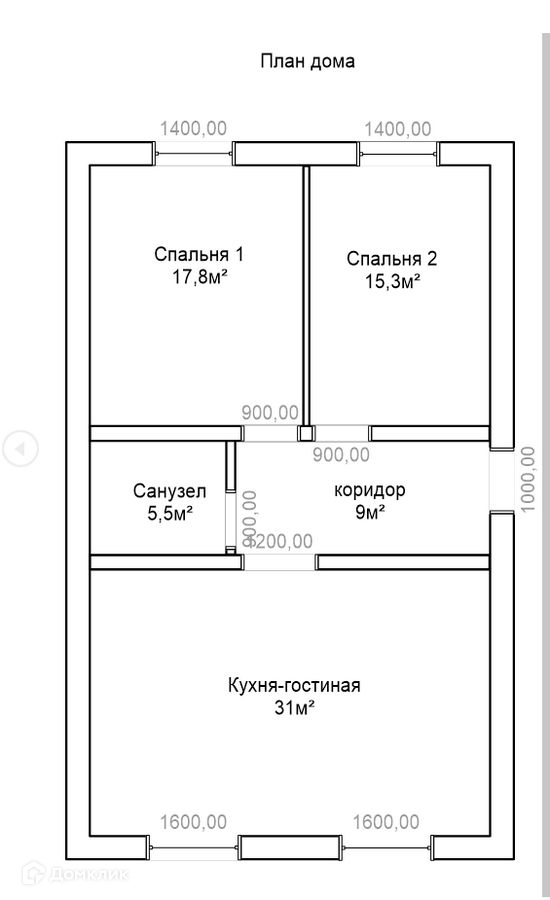 Общая площадь 70 м2
