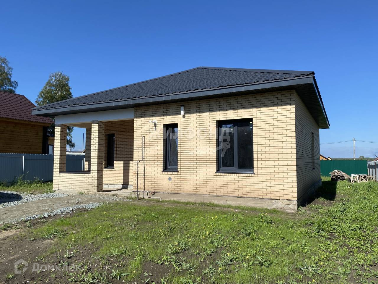Дом построен в 2023 году, стоит на ленточном армированном фундаменте, материал стен Сибит 300, облицован кирпичом завода Стройкерамика, крыша из матовой металлочерепицы, утеплена минеральной ватой. Установлены пятикамерные окна Vеkа, оконные перемычки завода Сибит, входная дверь с терморазрывом фирмы Центурион, высота потолков 3,3 м.