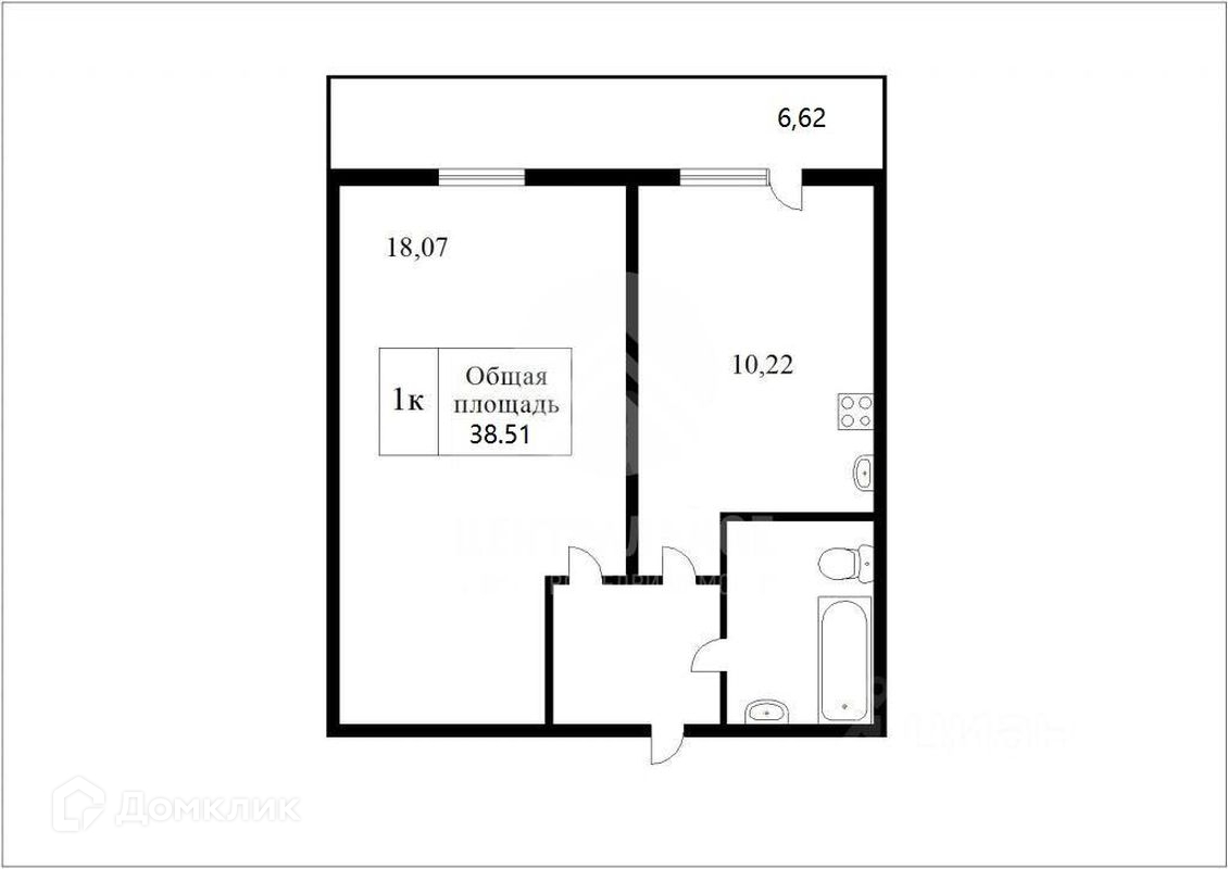 Общая площадь 39 м2