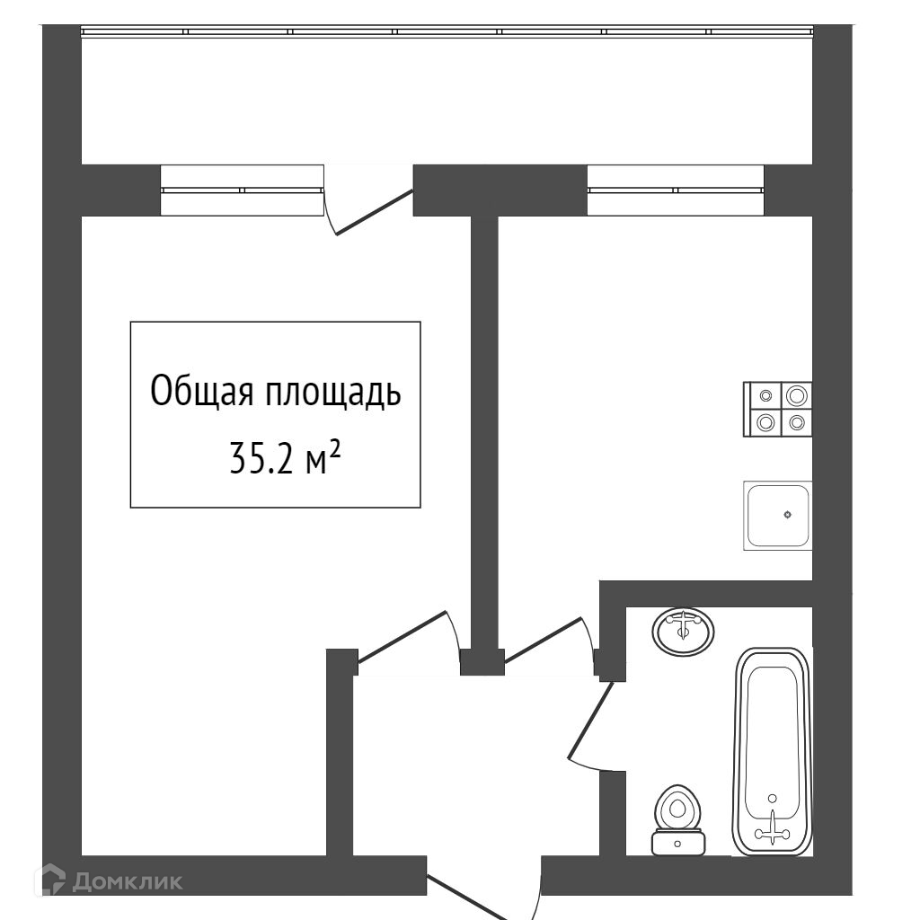 Общая площадь 35.2 м2