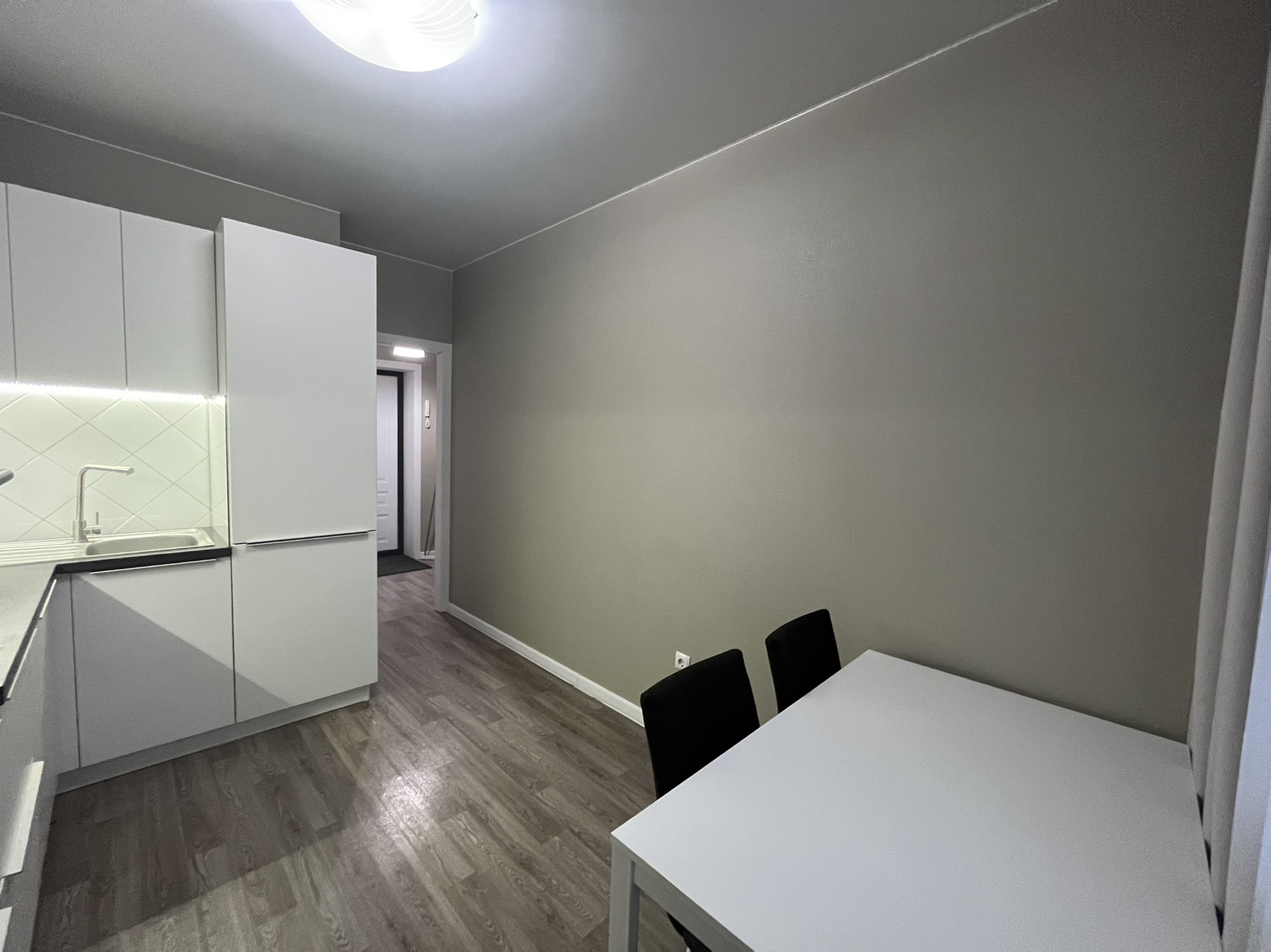 В квартире выполнен современный ремонт качественными отделочными материалами: установлены натяжные потолки с точечным освещением, на полу рулонная ПВХ-плитка, стены выровнены и оклеены плотными обоями в нейтральной цветовой гамме. В ванной комнате - кафель, керамогранит на полу. Установлены качественные входная и межкомнатные двери (царговые, покрытие - виниловая пленка). Установлены биметаллические монолитные радиаторы. Ремонт делали для себя качественно. Состояние ремонта и мебели отличное, жила одна девушка с момента сдачи дома застройщиком. Продажа в связи с покупкой квартиры большей площади.