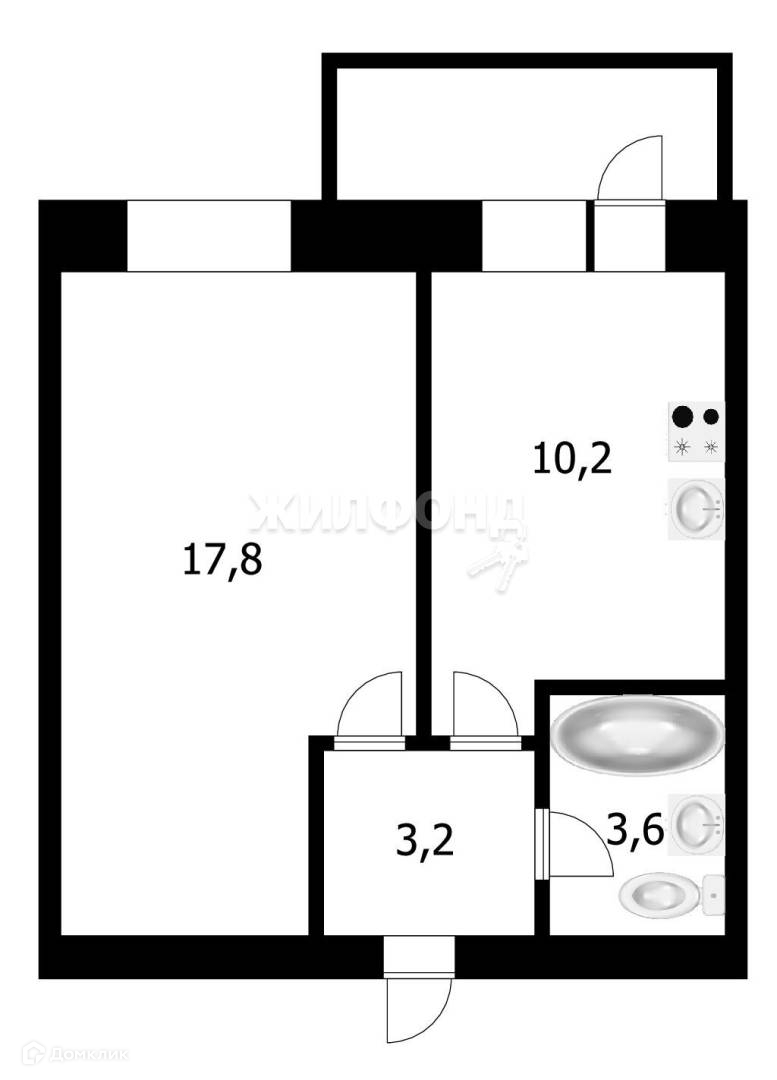 Жилая площадь 17.8 м2