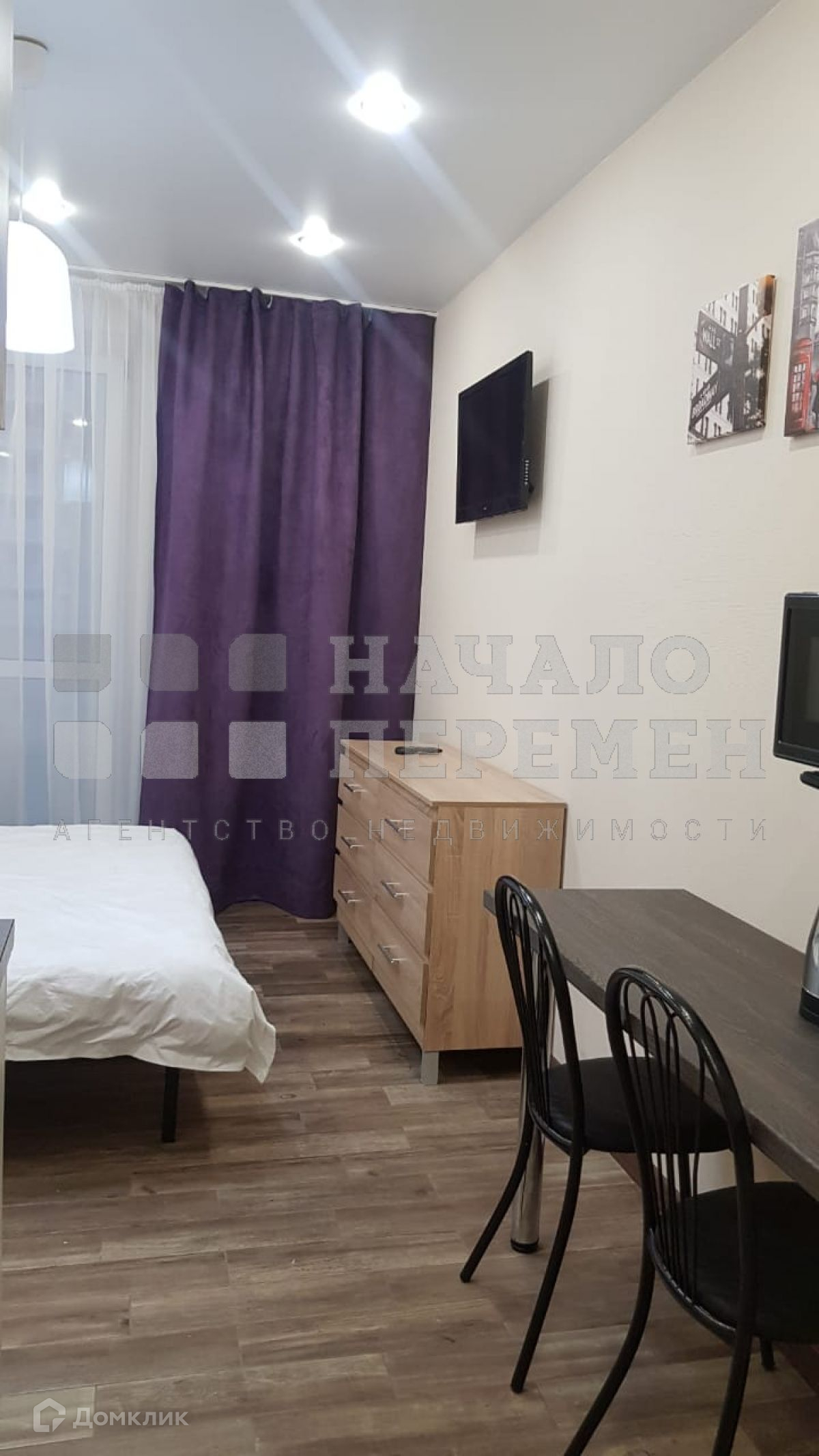 Студия полностью соответствует фотографиям, за исключением - комод темный и шторки в ванной тоже более темные.