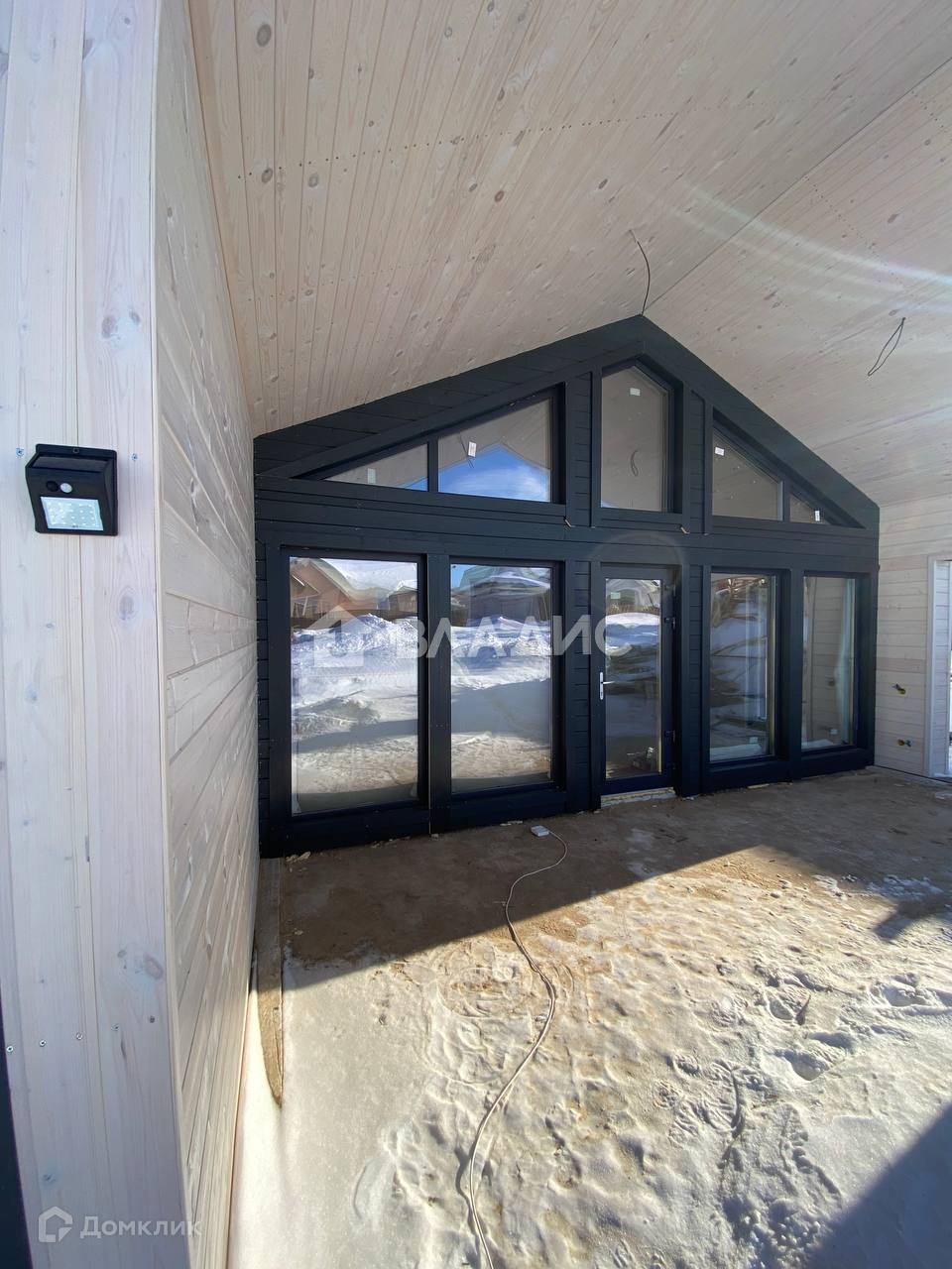 Крыша покрыта Кликфальцем, установлены снегозадержатели, стены обшиты имитацией бруса и вставками из кликфальца. Все окна имеют функцию двери, что позволяет выйти на улицу из любого помещения дома.