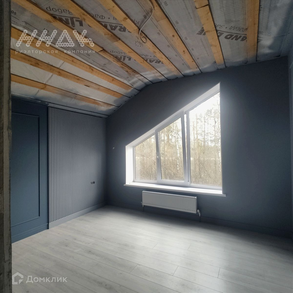 На втором этаже расположены 2 спальни по 13,7 и 13 м², рабочий кабинет - 13 м², гардеробная комната - 7,8 м² и санузел - 5,8 м². На полу ламинат, стены оштукатурены и покрашены.