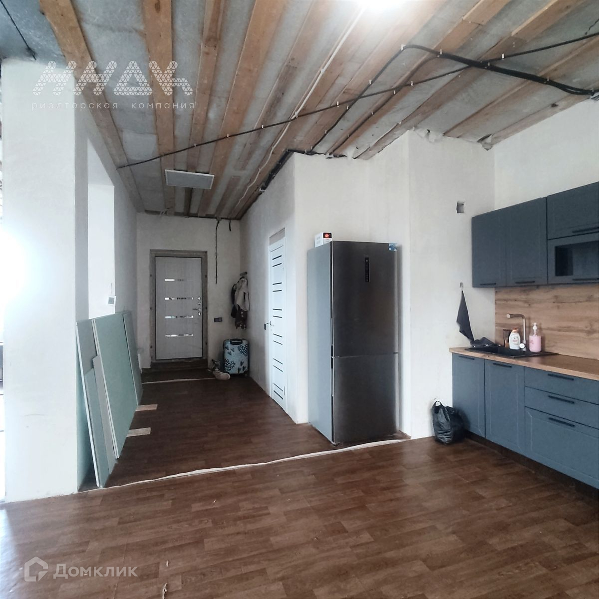 На первом этаже расположены: кухня-гостиная 53 м² с выделенной зоной для отдыха, совмещенный санузел - 6,6 м² , прихожая - 5,1 м². На этаже полностью теплый пол, витражные окна с двухкамерным стеклопакетом, встроенная кухня. Входная дверь с терморазрывом. На полу - стяжка, стены готовы под покраску или обои.