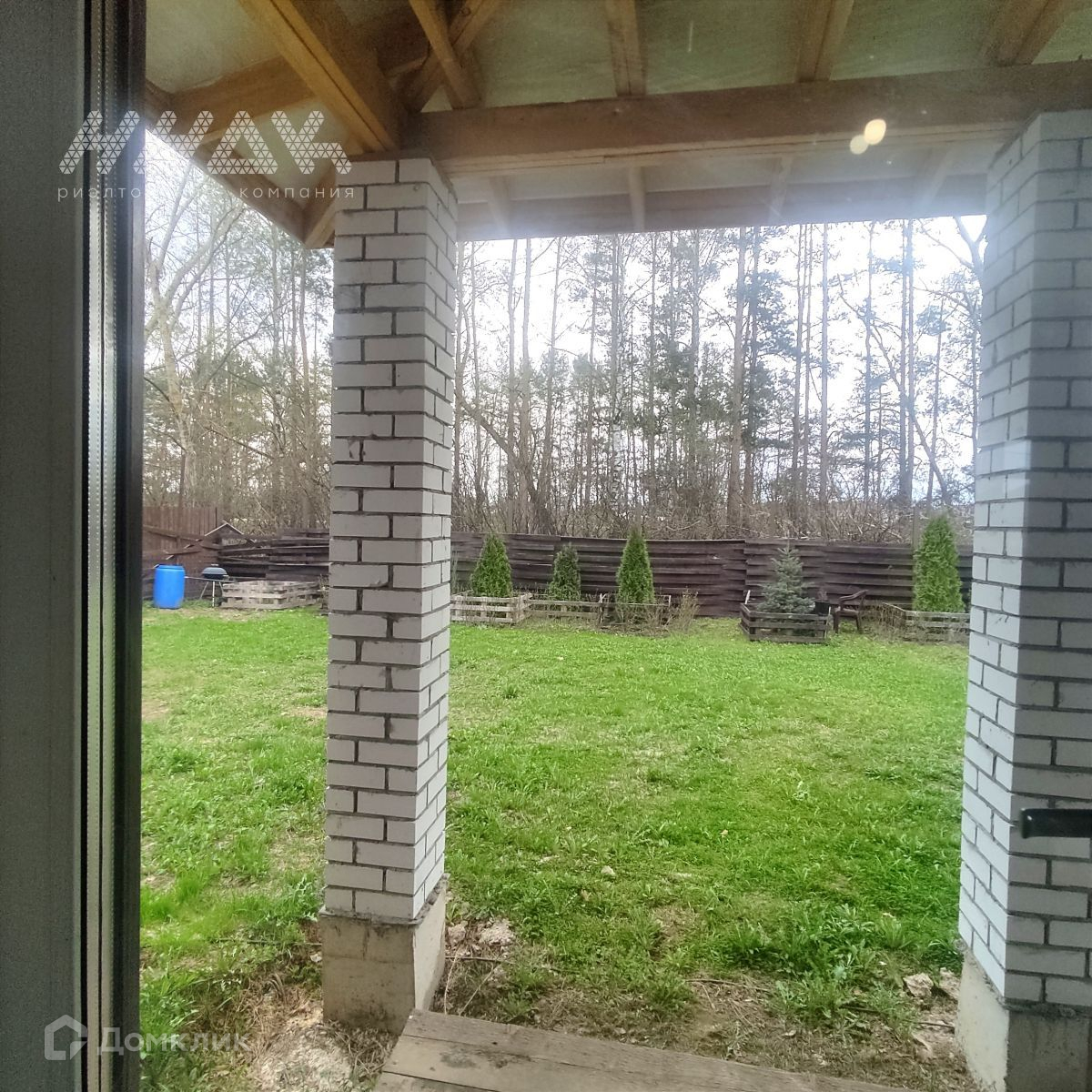 Земельный участок ровный, прямоугольной формы, облагорожен газоном, декоративными деревьями и кустарниками: туя, можжевельник, голубая ель, клен глобозум, кизильник в качестве живой изгороди, гортензия. Имеются плодовые деревья: вишня, черешня, яблоня, барбарис.
