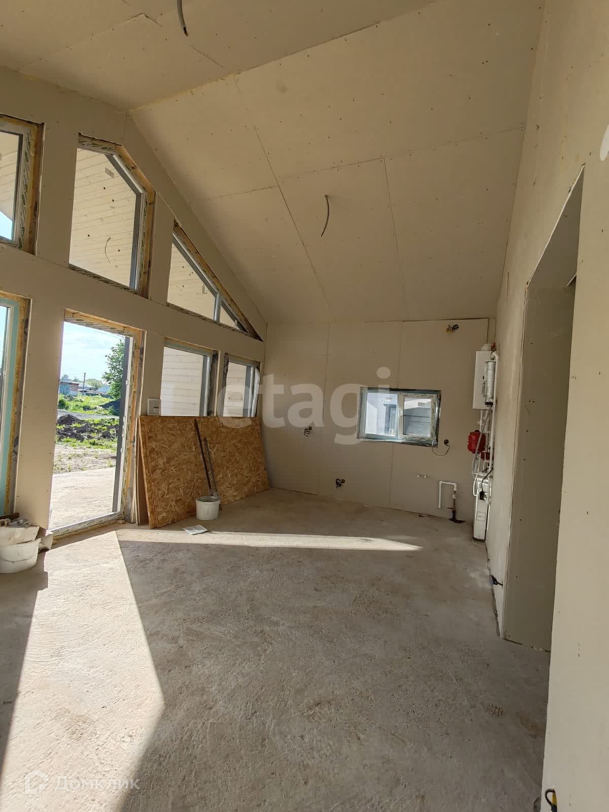 Внутри стены и потолок зашиты ГКЛ и позволяет быстрее сделать ремонт на свой вкус. Второй свет 4,5 м и дополнительные 2 окна на торцах дома в кухне-гостиной хорошо освещает всю комнату и коридор .