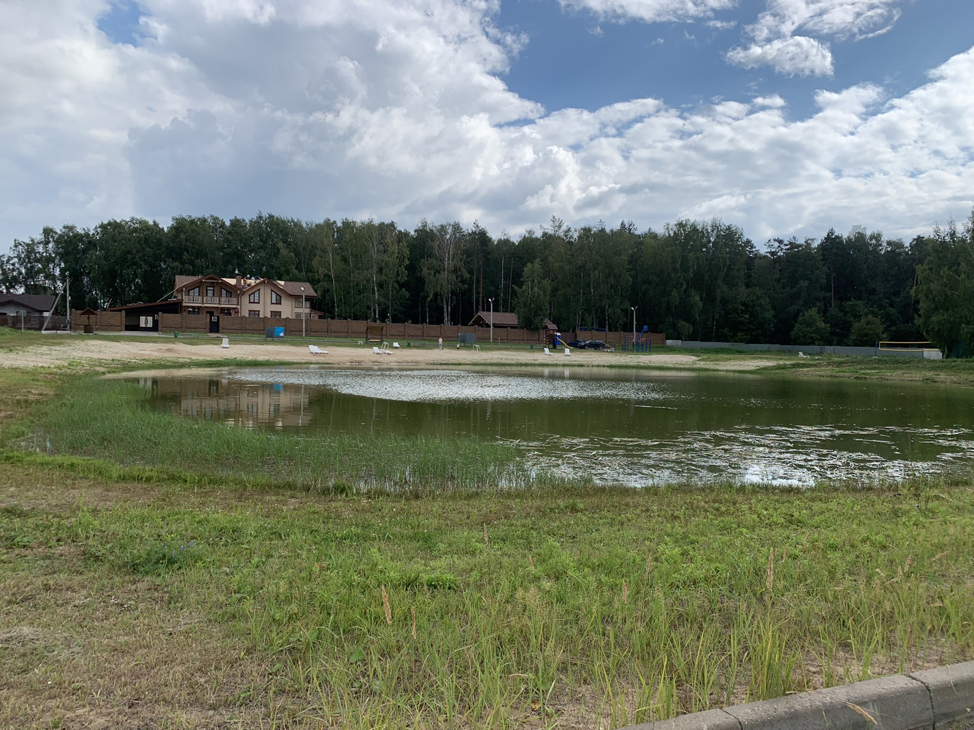 кортфутбольное поле⚽️озеро с песчаным поляжем, детская площадка