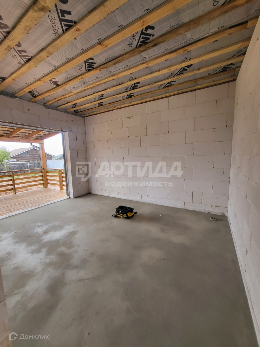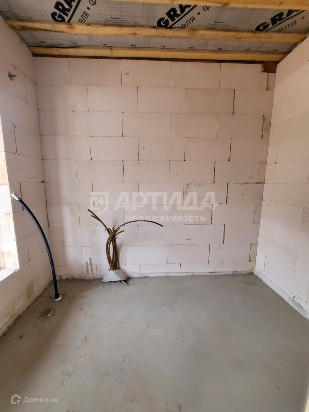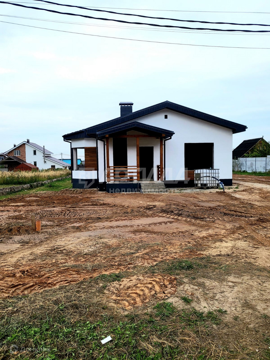 В доме 2 большие комнаты и кухня гостинная с выходом на террасу , санузел, котельная. Предчистовая отделка, которая  включает в себя  прокладку электрических проводов, водяных труб, также залита стяжка, тёплые полы.
