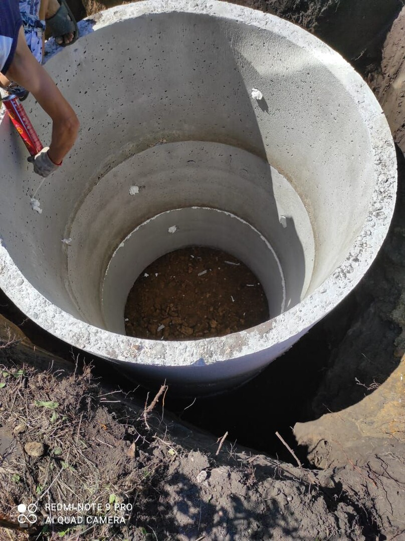 На канализации три + два кольца по желанию заказчика будет установлена табличка - " Прощай ассенизатор"))))!