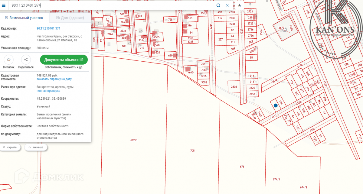 Участок под ИЖС, 8 сот. на продажу в селе Каменоломня, Степная улица, 26