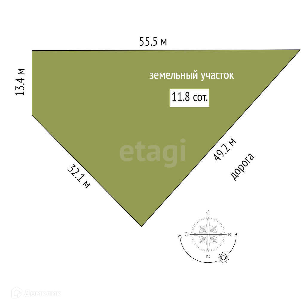 Площадь участка 11.8 сот.