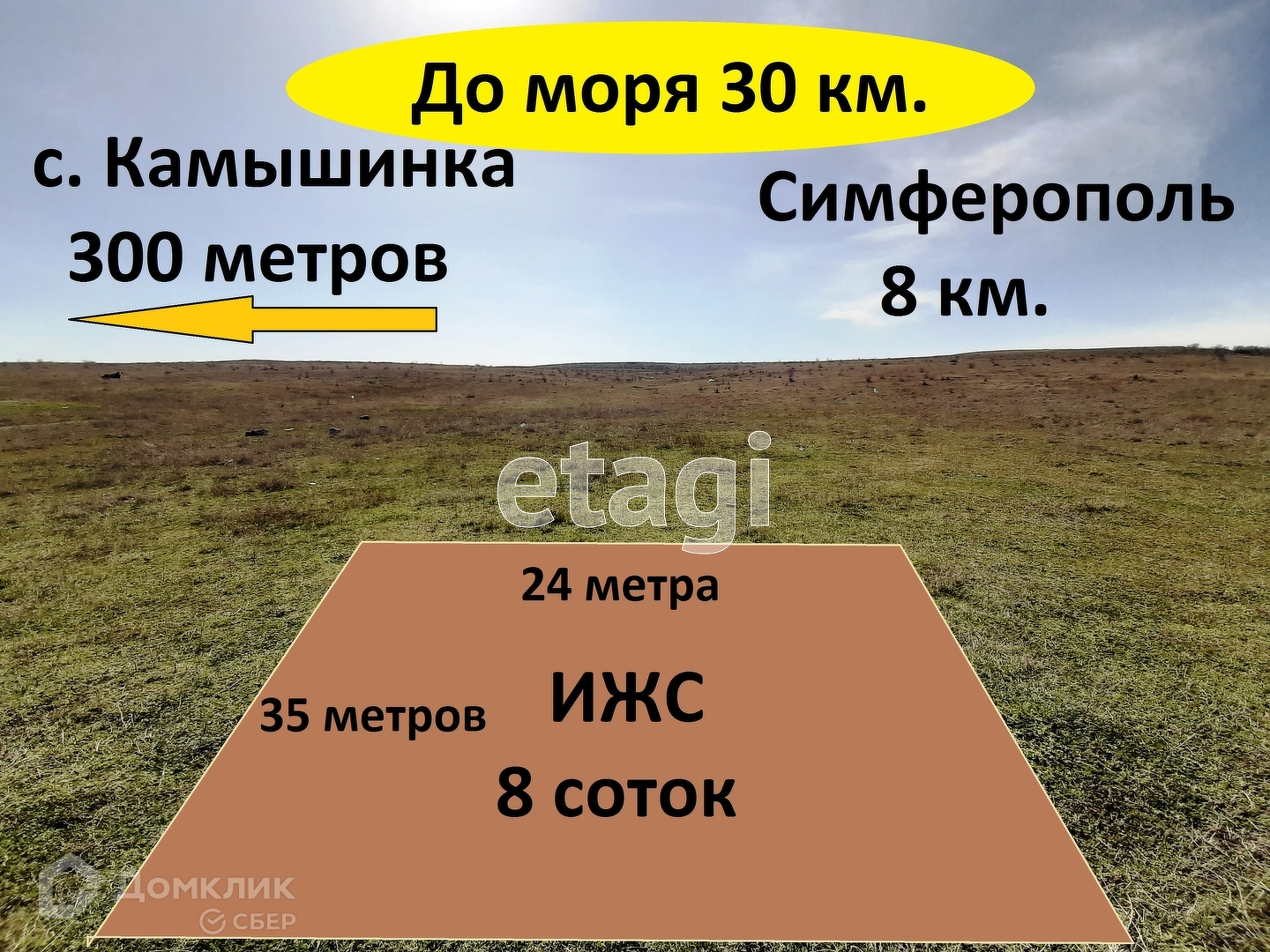 Участок, площадью 8 соток, правильной прямоугольной формы, размером 24 на 35 метров, расположен в сухом месте, на площадке с легким уклоном!