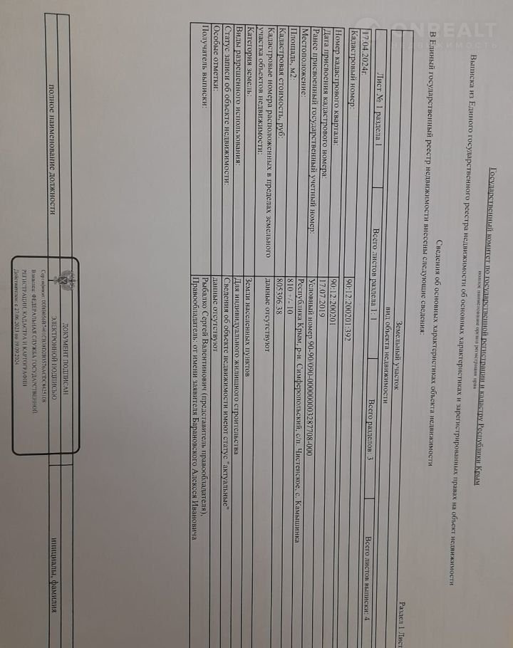 Стоимость недвижимости: