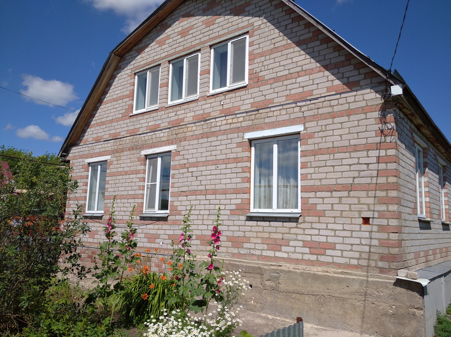 двухэтажный деревянный дом с подвалом обложенный кирпичом, баня, погреб, сарай, гараж, большой участок