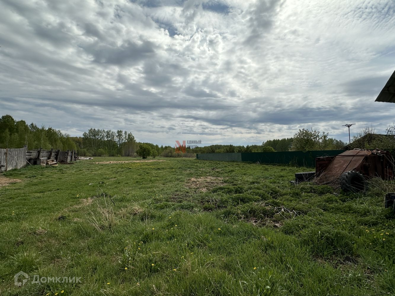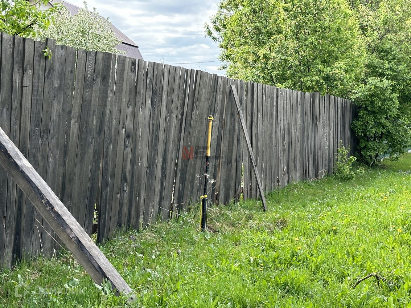 Участок площадью 21 сотки, огорожен забором с трех сторон.