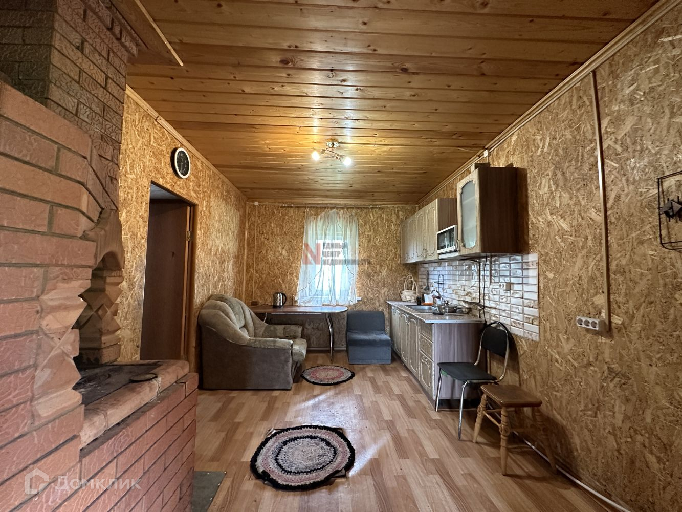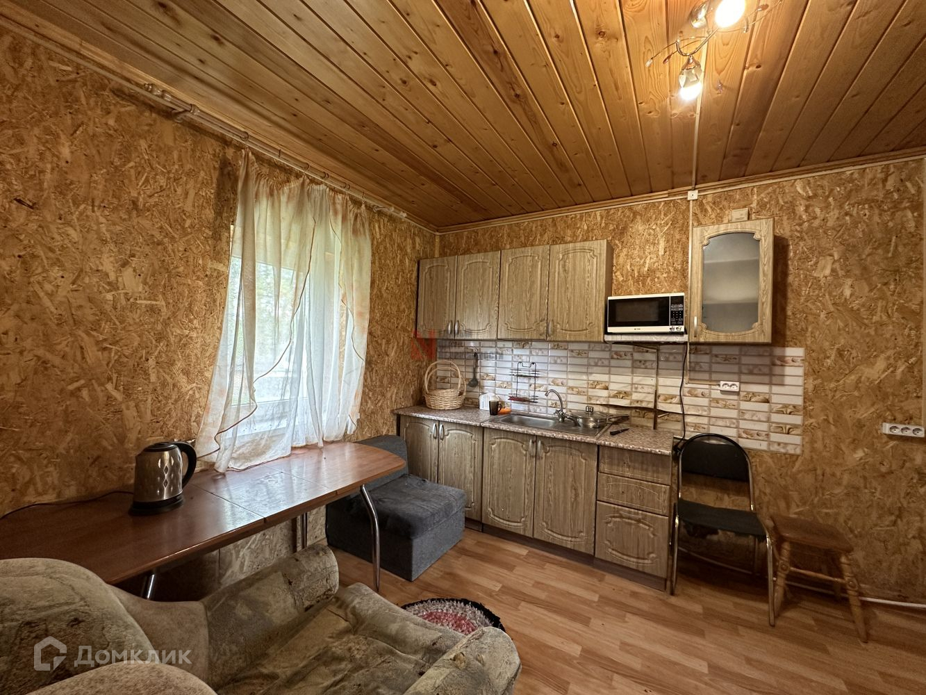 Планировка комнат: кухня-гостиная с оборудованной кухонной и обеденной зоной. Вода заведена в дом, все удобства для хозяйки под рукой, можно установить стиральную машину.