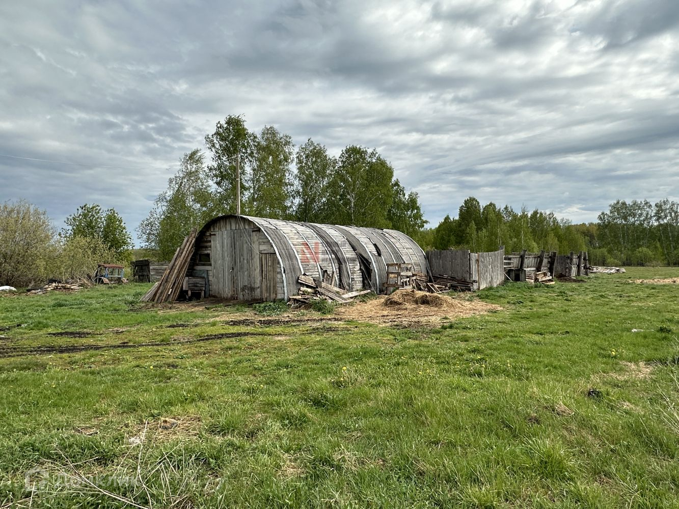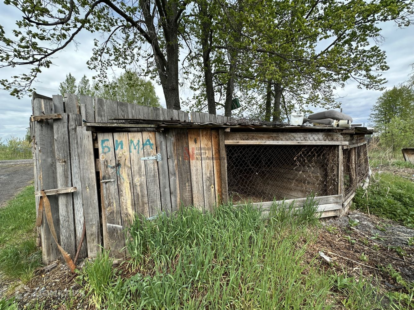 На участке действующая баня, ангар для разведения живности, вольер для собаки.
