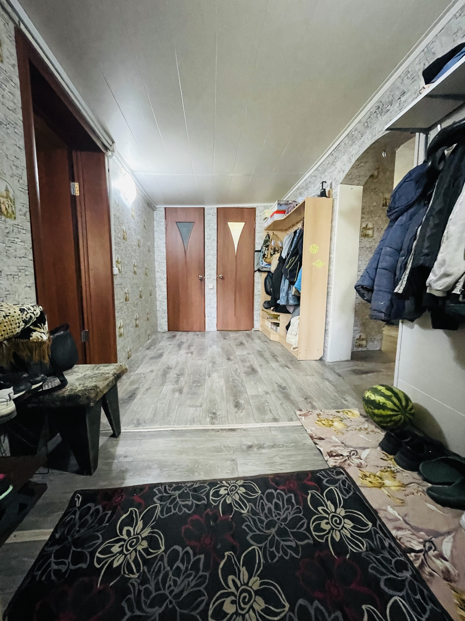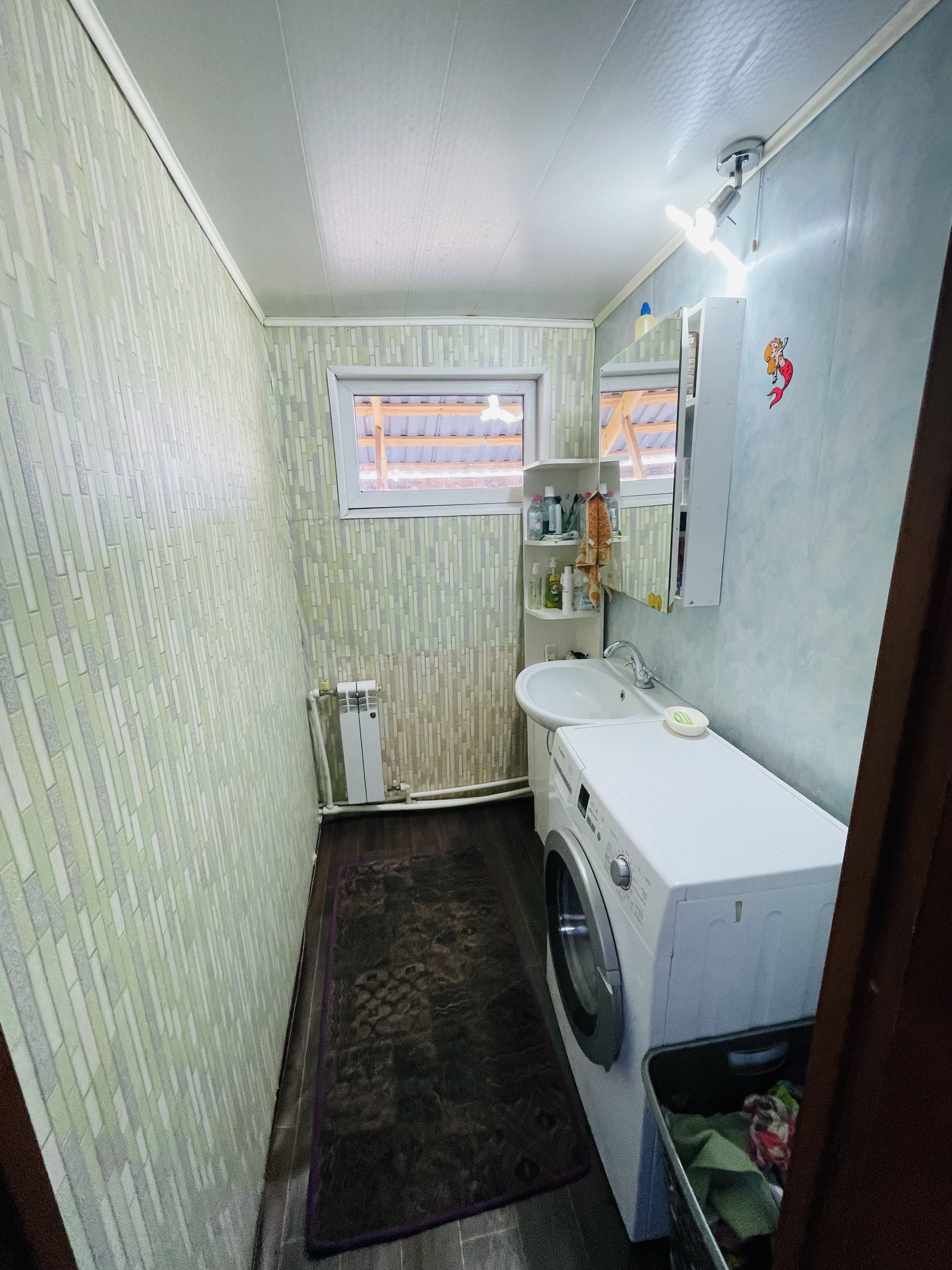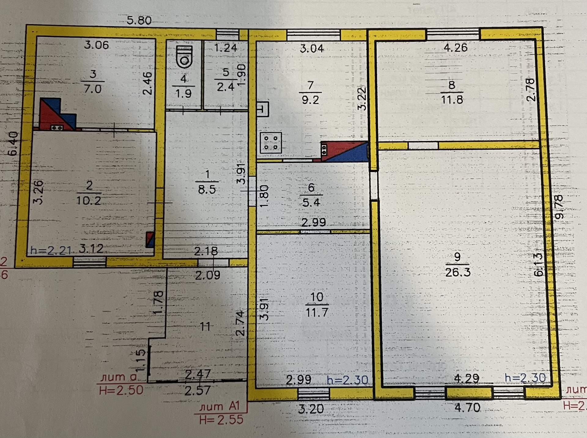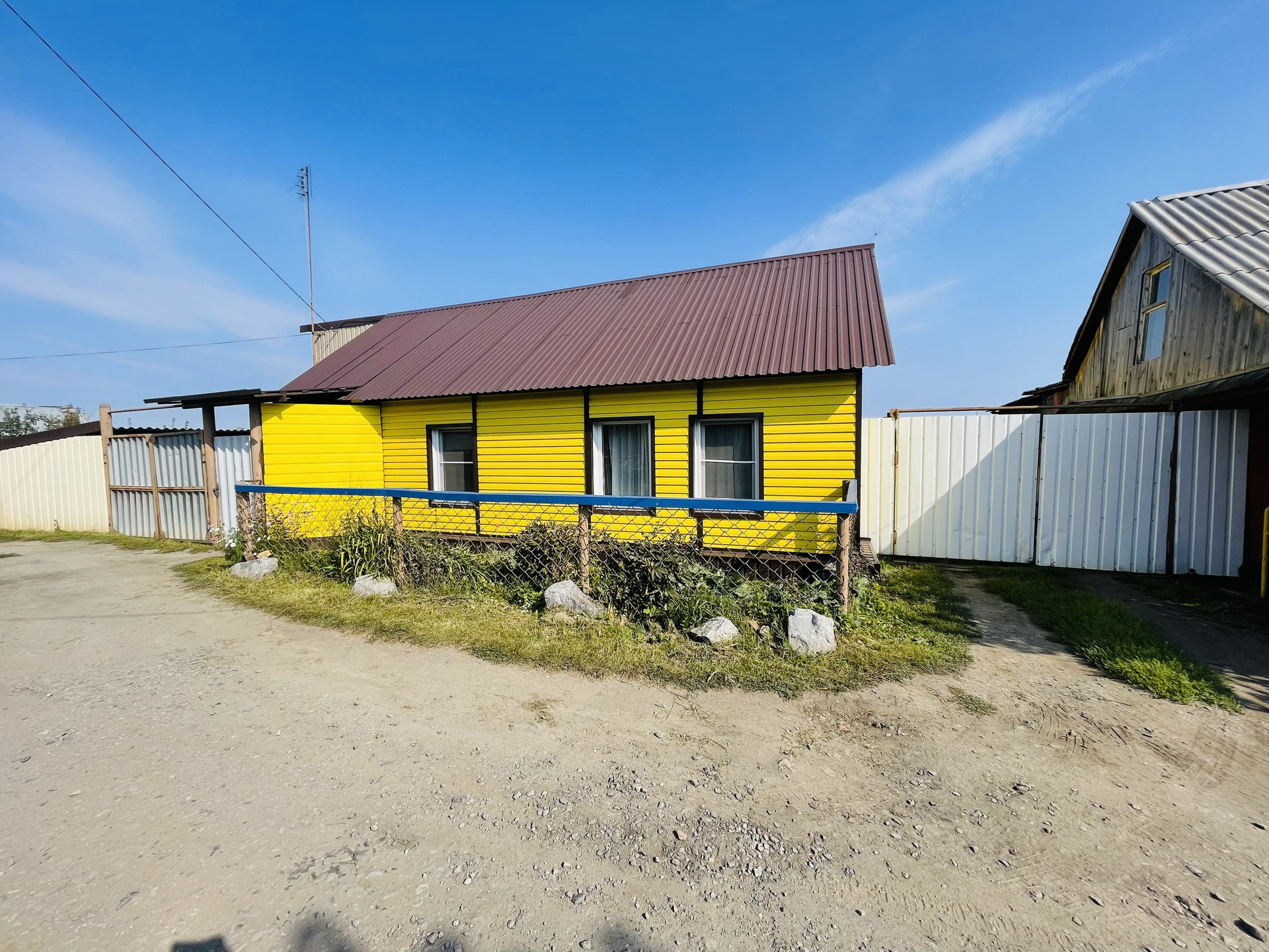 Дом состоит из 3 комнат (11.7 кв.м, 11.8 кв.м, 26.3 в.м.), кухни (9.2 кв.м.), дополнительной комнаты 10.2 кв.м., баня, туалет, есть два погреба.