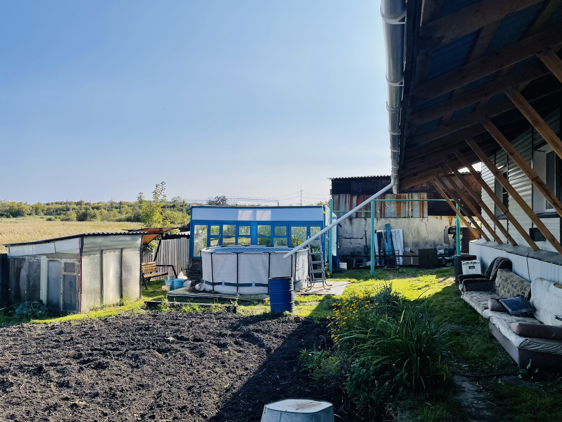 Земельный участок 11 соток (по документам 6), плодородная земля, есть такие посадки, как малина, слива, яблони, груша, смородина, вишня, крыжовник, клубника (два вида), есть теплица 2 на 4.