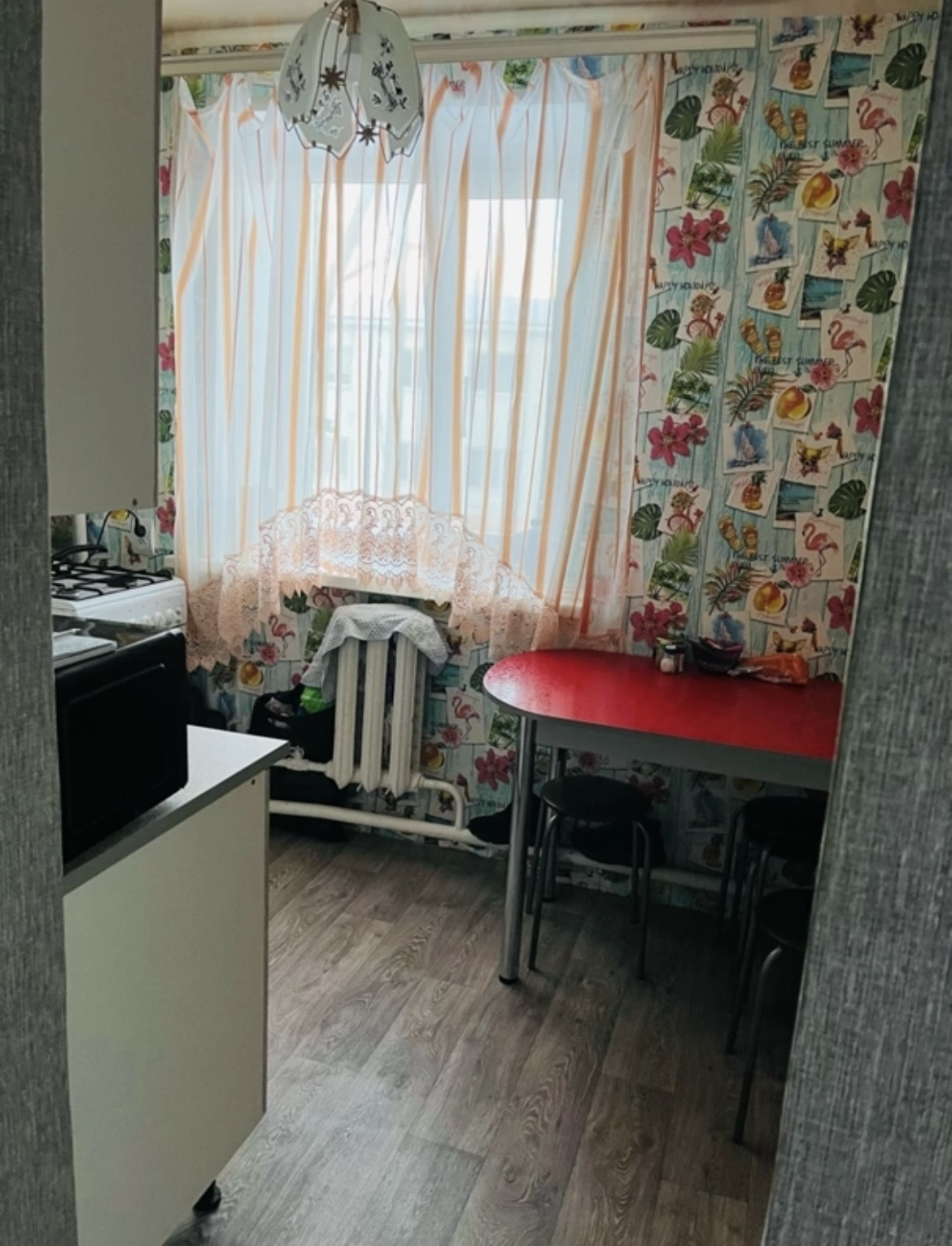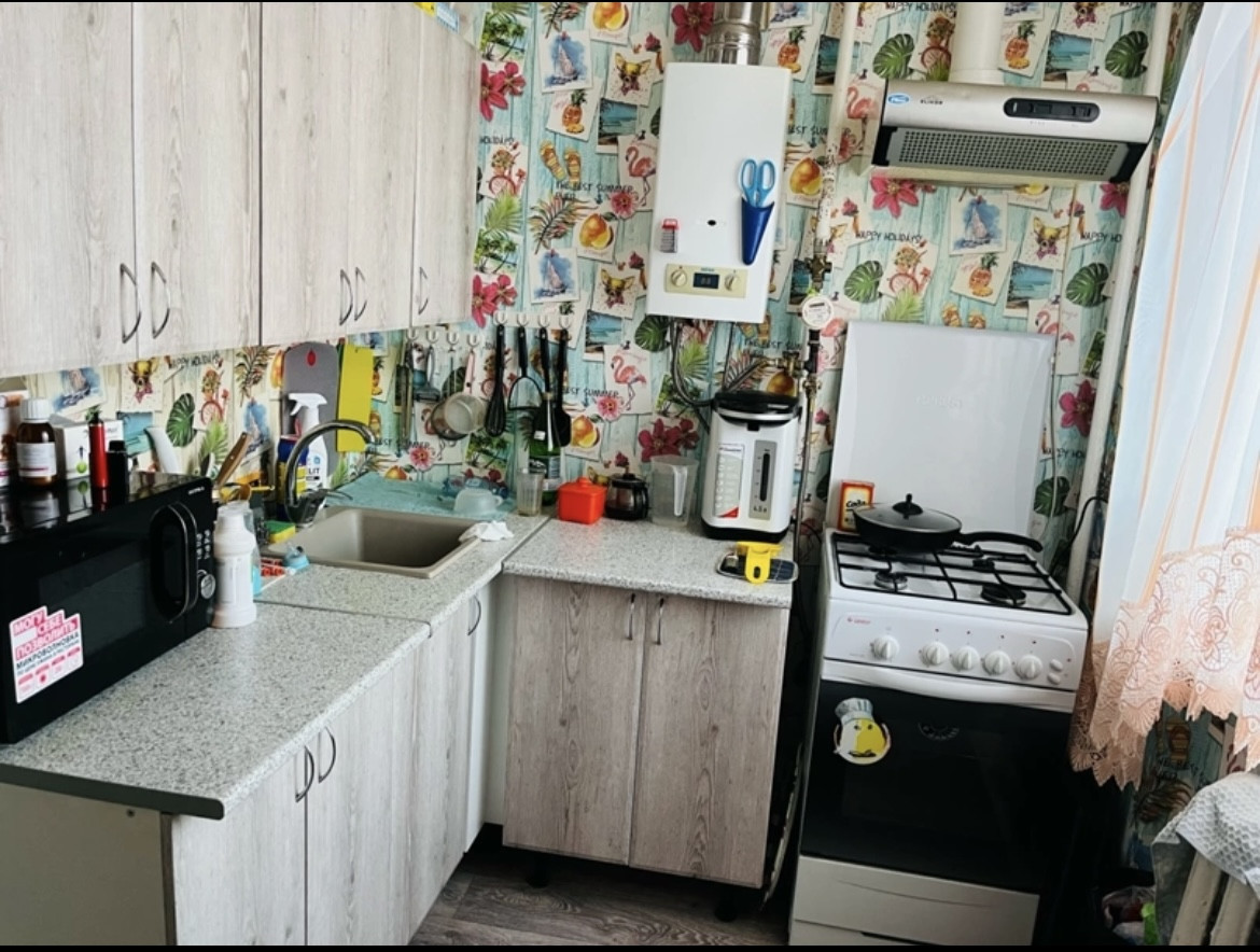 Квартира угловая. Соседи спокойные. В квартире стоит газовый котел (поэтому вода круглый год). В квартире останется кухонный гарнитур, шкаф в комнате (если не нужно будет, можем забрать). Был сделан косметический ремонт. Сами живем тут с ребенком, поэтому о просмотре квартиры договариваемся заранее. Балкона нет.