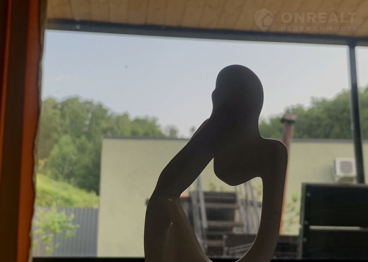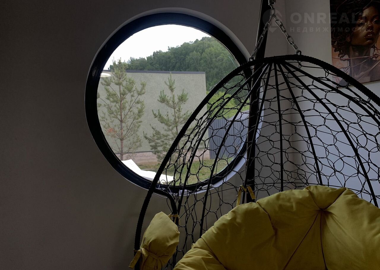 - Участок с видом на лес, большие витражные окна.