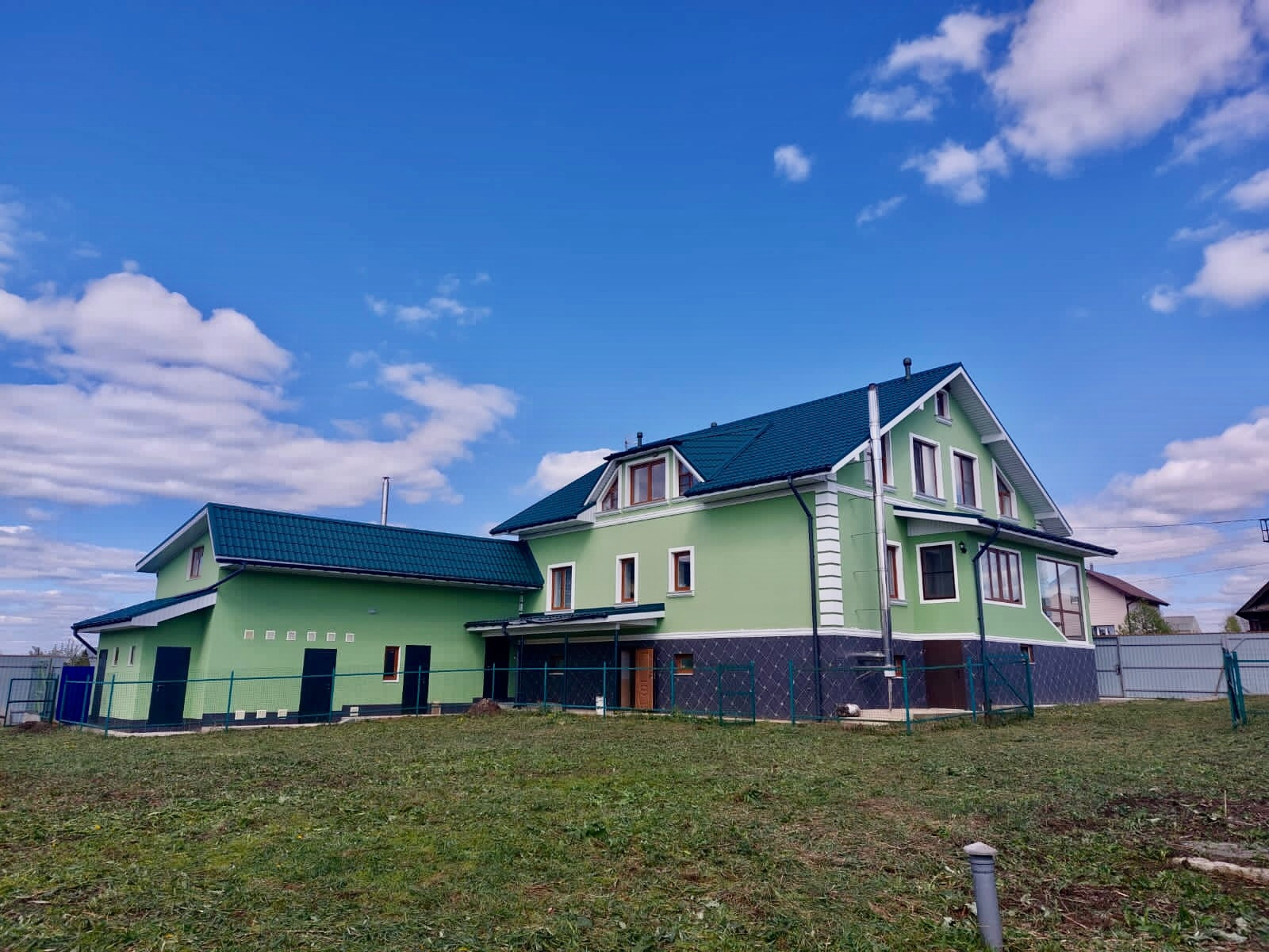 Гараж с подъемными воротами, помещение с генератором, помещение для хранения дров, для птицы и инвентаря, вольер для собаки.
