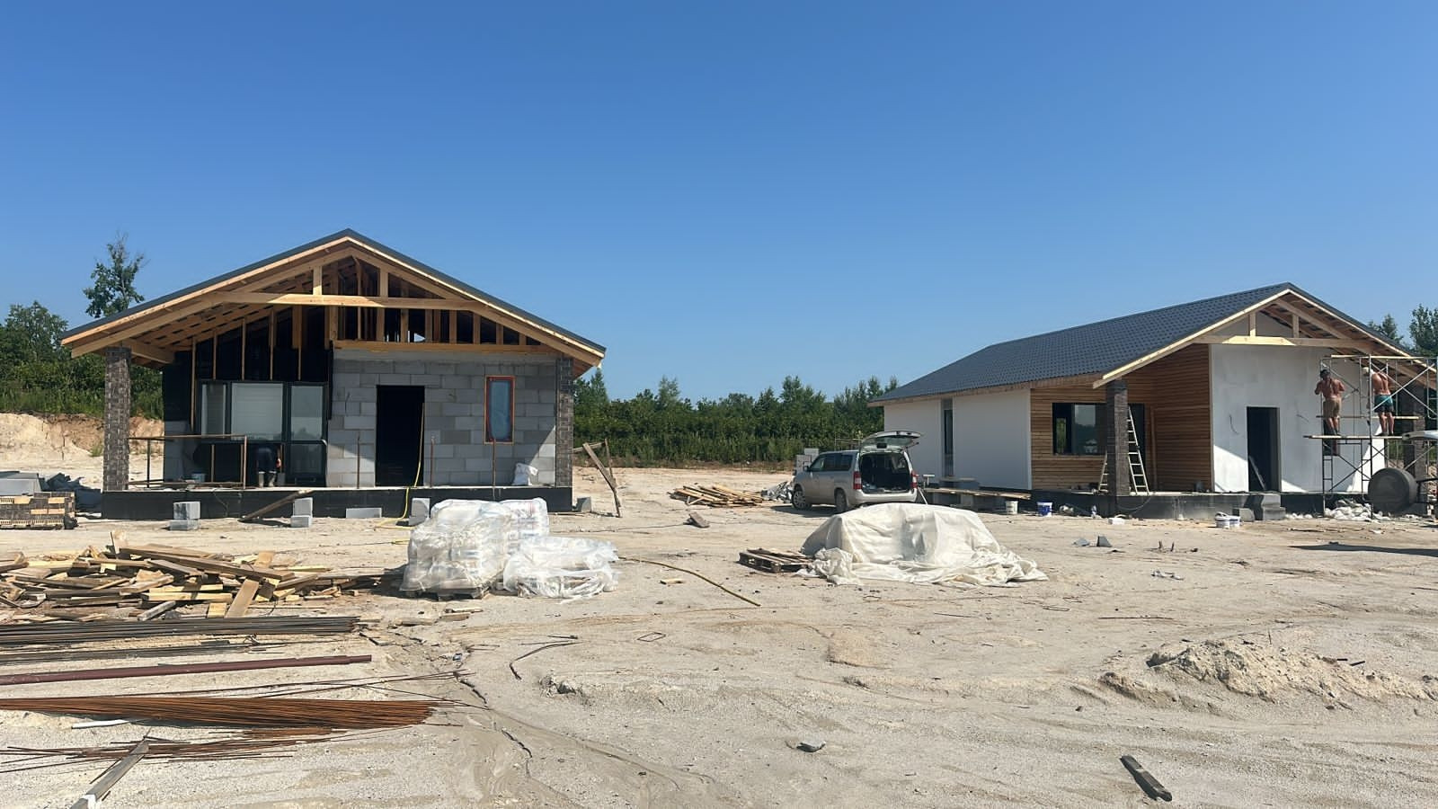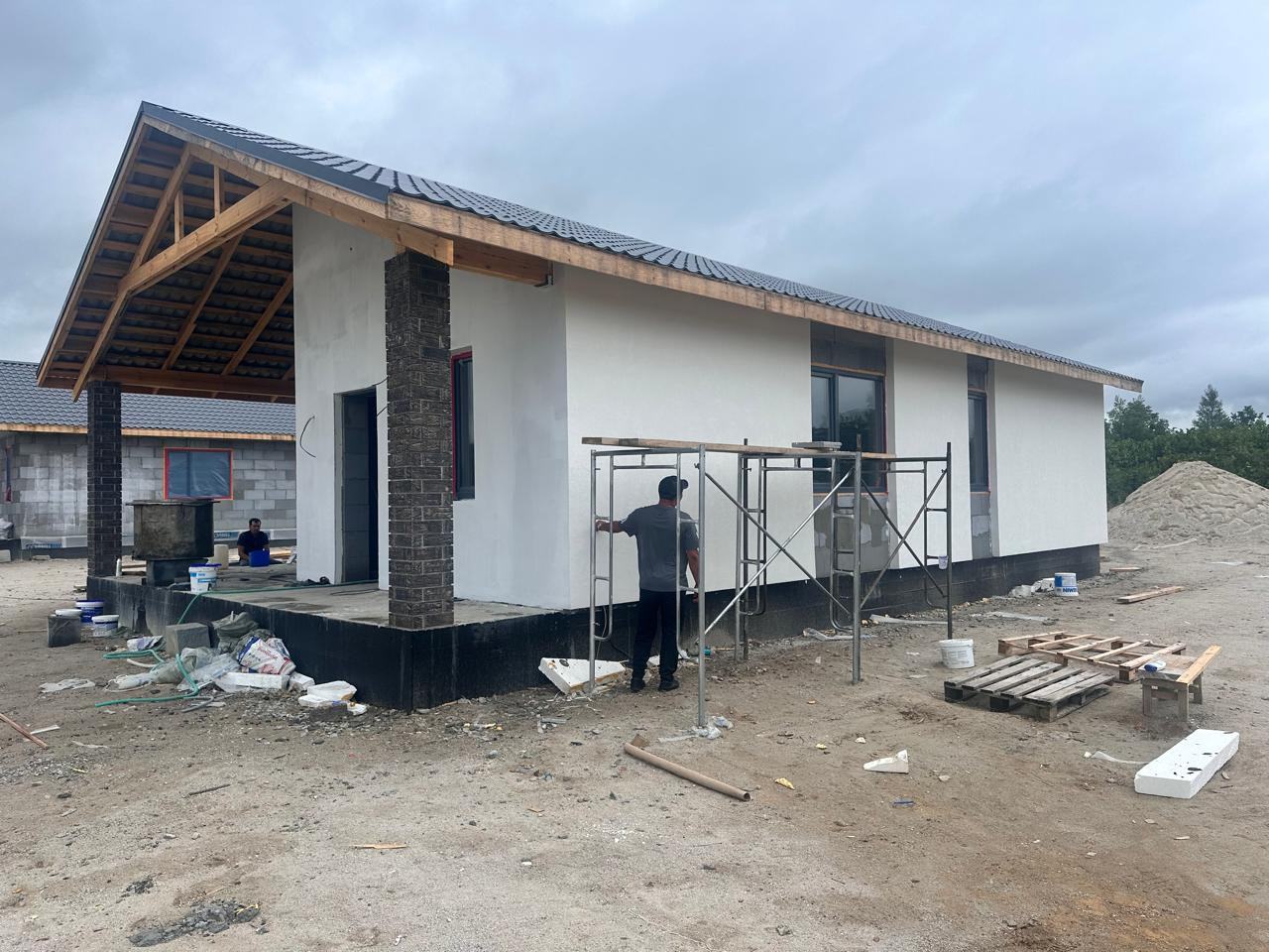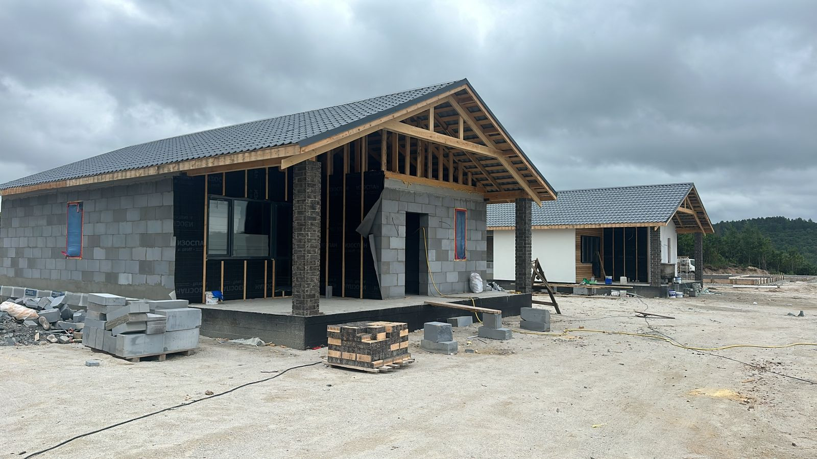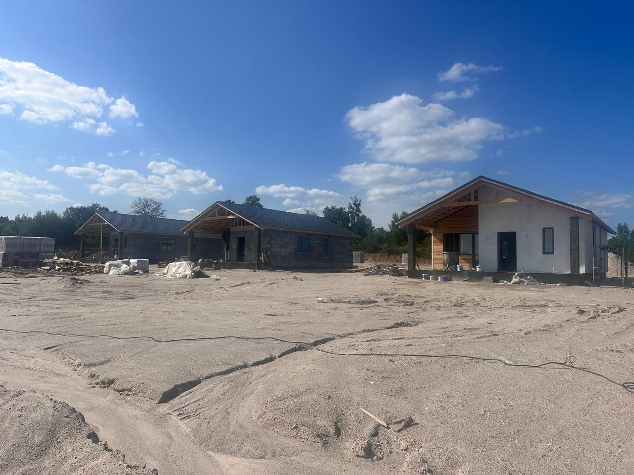 В продаже дома от застройщика в новом тихом  районе в 10 минутах езды до города, закрытый поселок на 16 домов, вокруг зеленая зона, дома 100 кв.м., 2 спальни, гостинная, кухня, совмещенныйс/у, веранда, зем.уч.от 8 до 10 сот , фасад оштукатурен силиконизированной фактурной штукатуркой,  участки ровные, скавжина 30 метров, септик Аэробокс (станция биологической очистки), предчистовая отделка.
