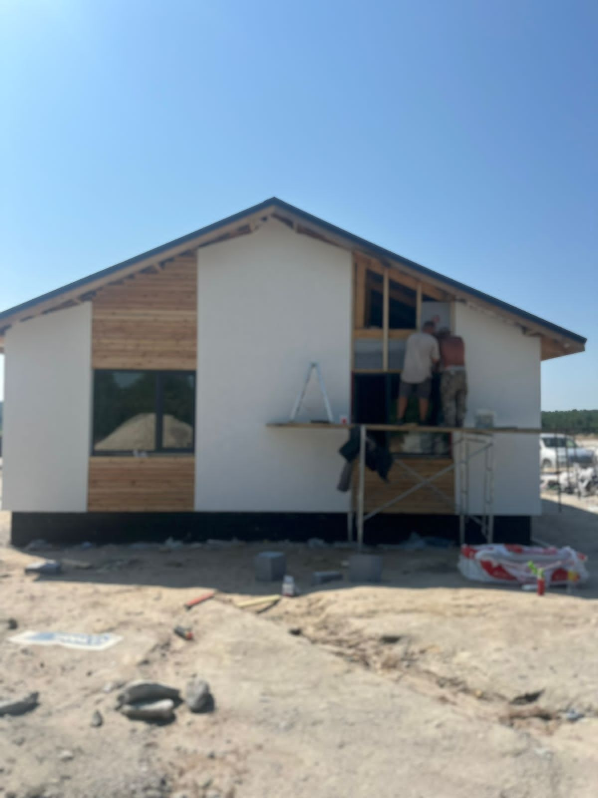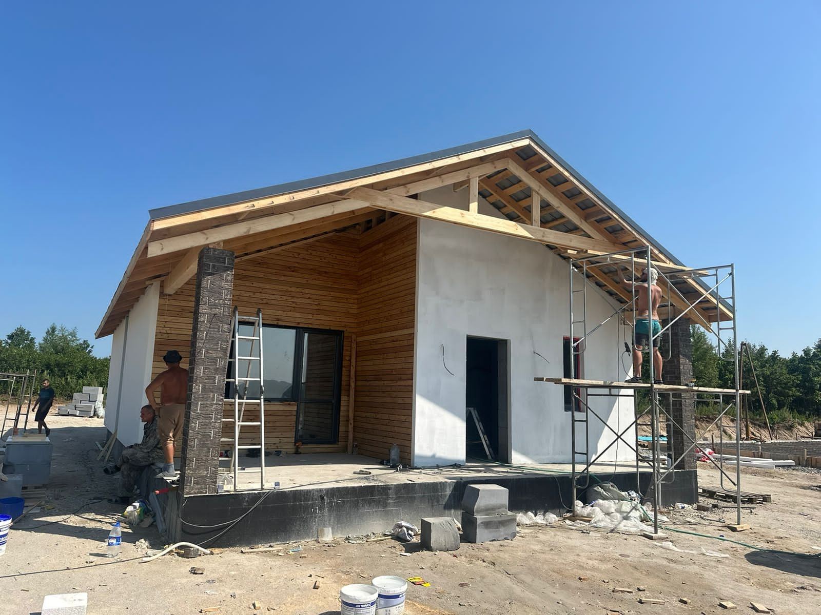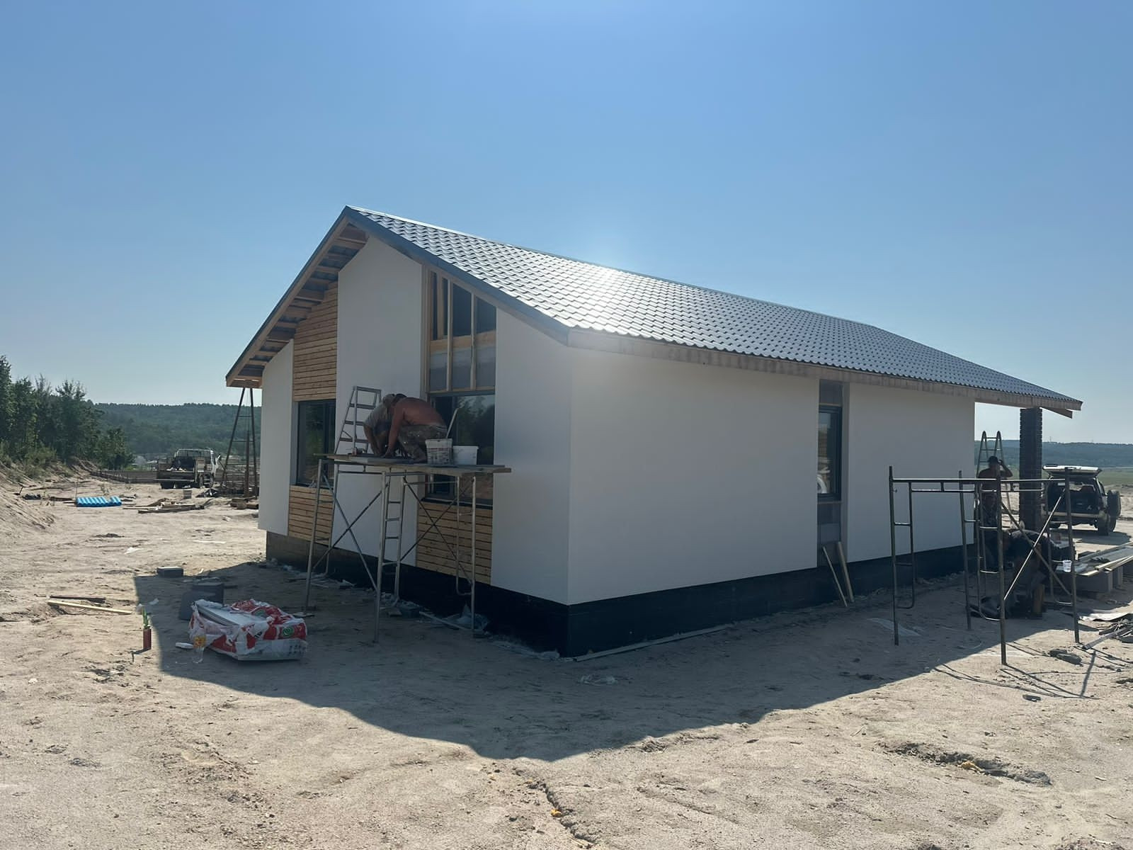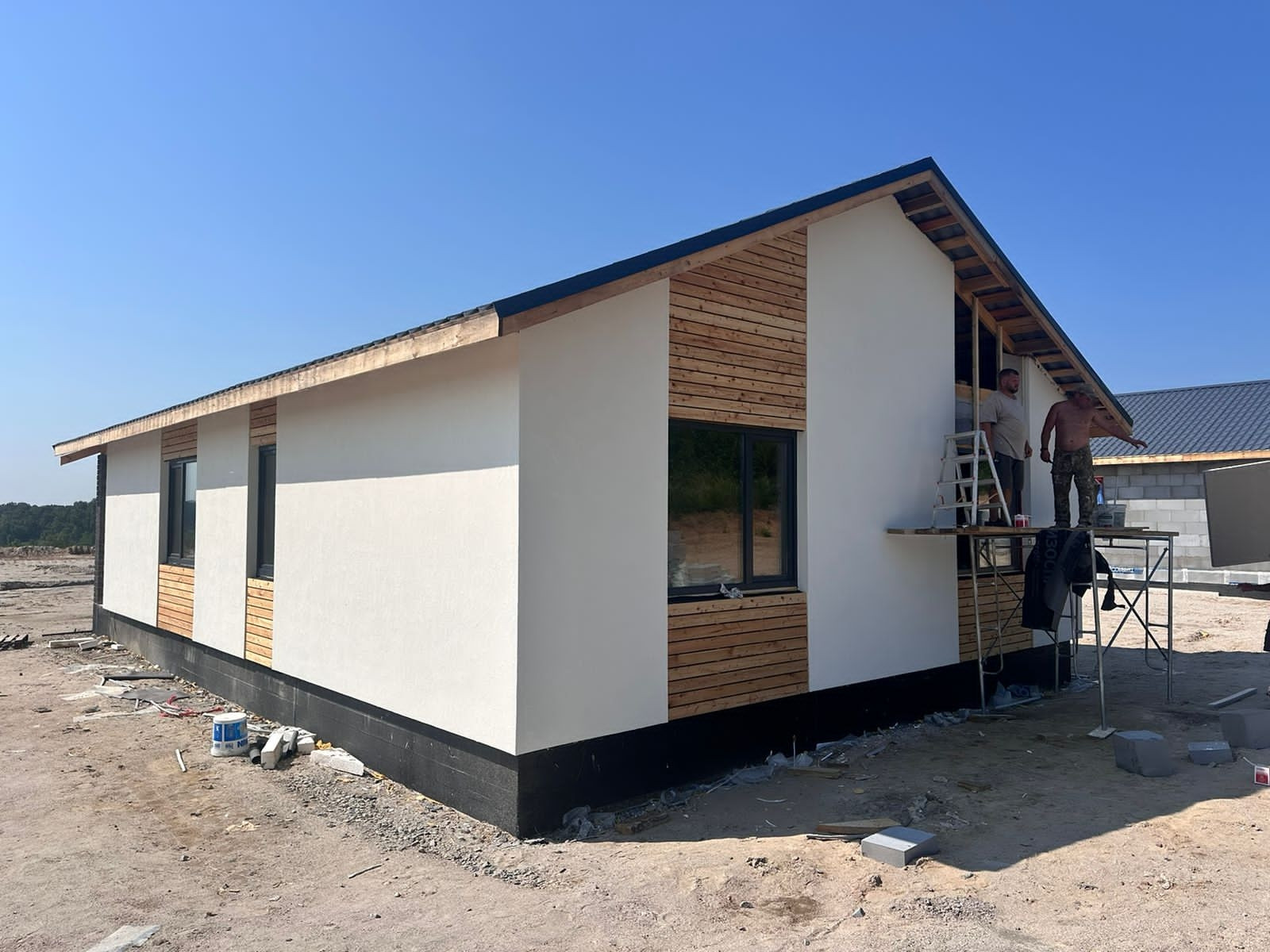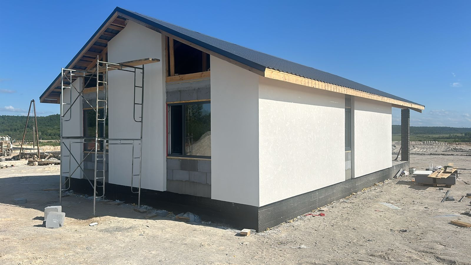 В продаже дома от застройщика в новом тихом  районе в 10 минутах езды до города, закрытый поселок на 16 домов, вокруг зеленая зона, дома 100 кв.м., 2 спальни, гостинная, кухня, совмещенныйс/у, веранда, зем.уч.от 8 до 10 сот , фасад оштукатурен силиконизированной фактурной штукатуркой,  участки ровные, скавжина 30 метров, септик Аэробокс (станция биологической очистки), предчистовая отделка.