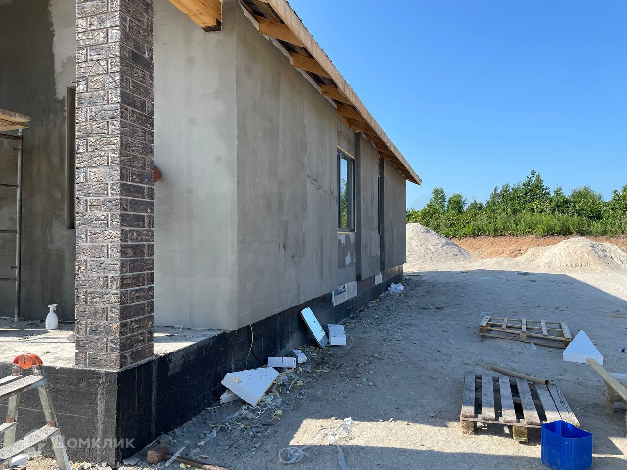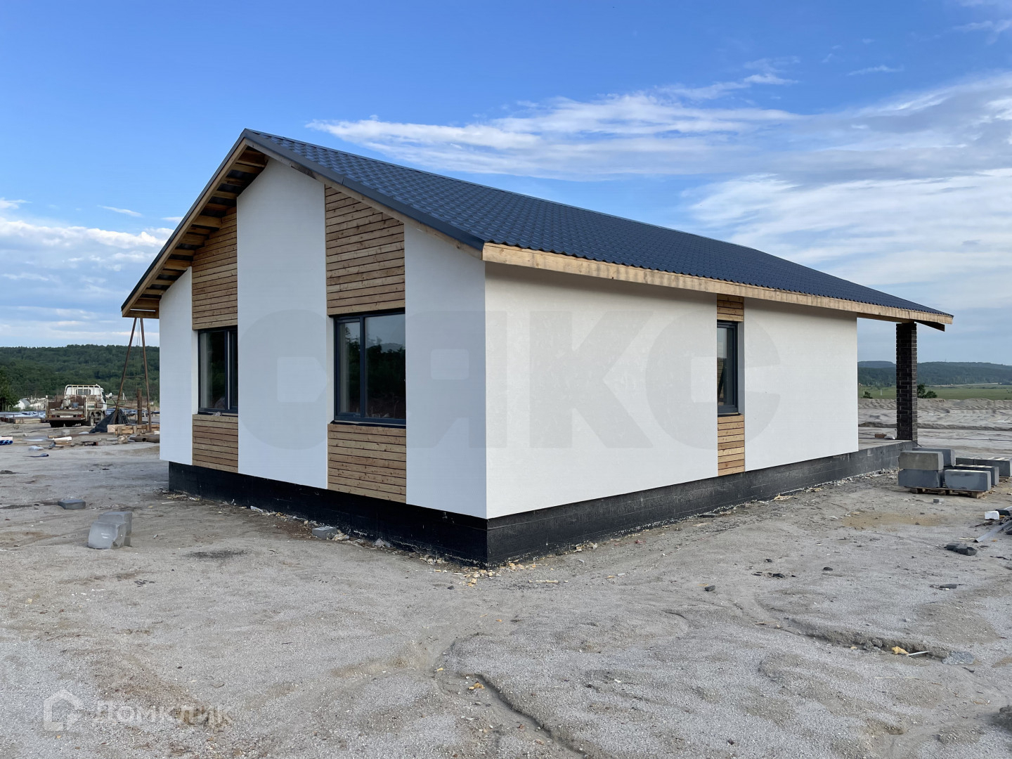 В доме сделана качественная внутренняя предчистовая отделка и стильная внешняя отделка.