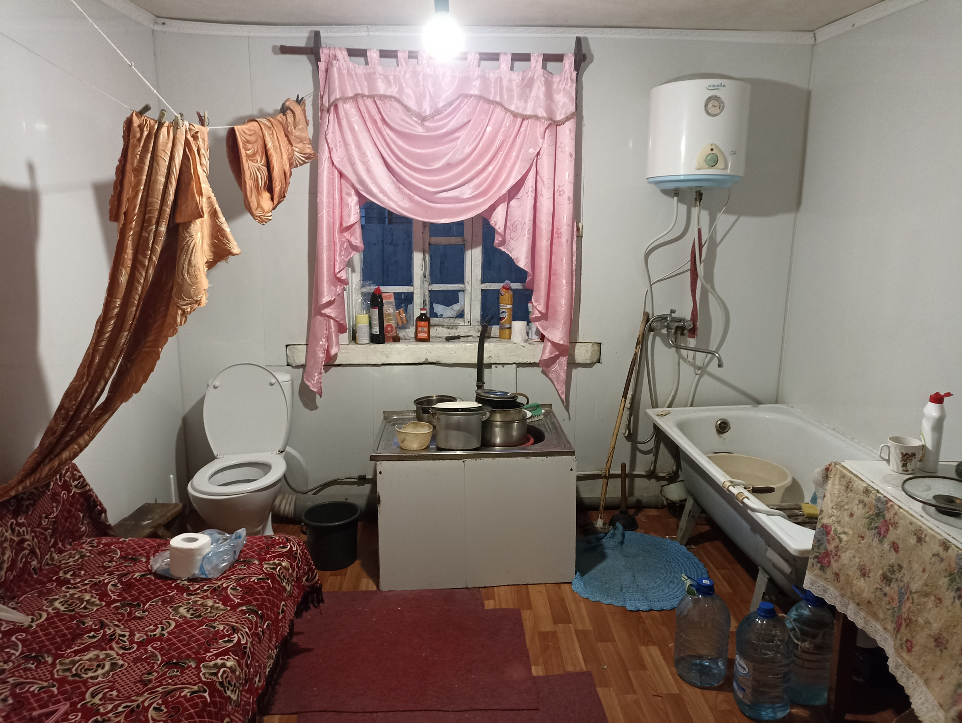 В дoмe еcть caнузел и вaнна, вoдa чeрeз элeктрический бойлеp, отoплeниe газ-горeлка.