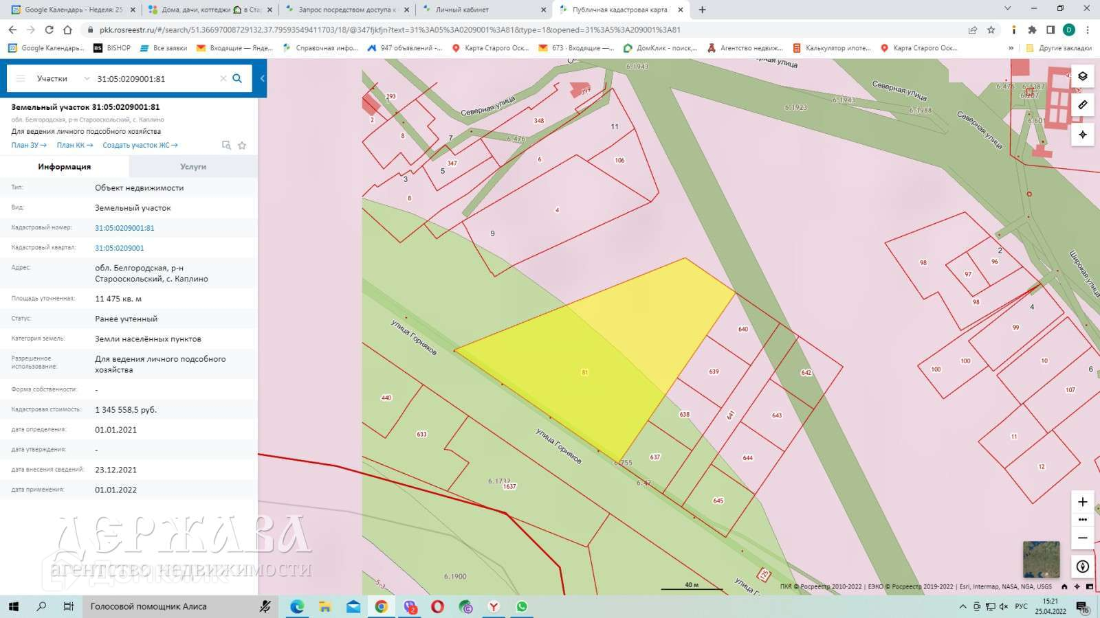 Участок под ИЖС, 114.75 сот. на продажу в селе Каплино