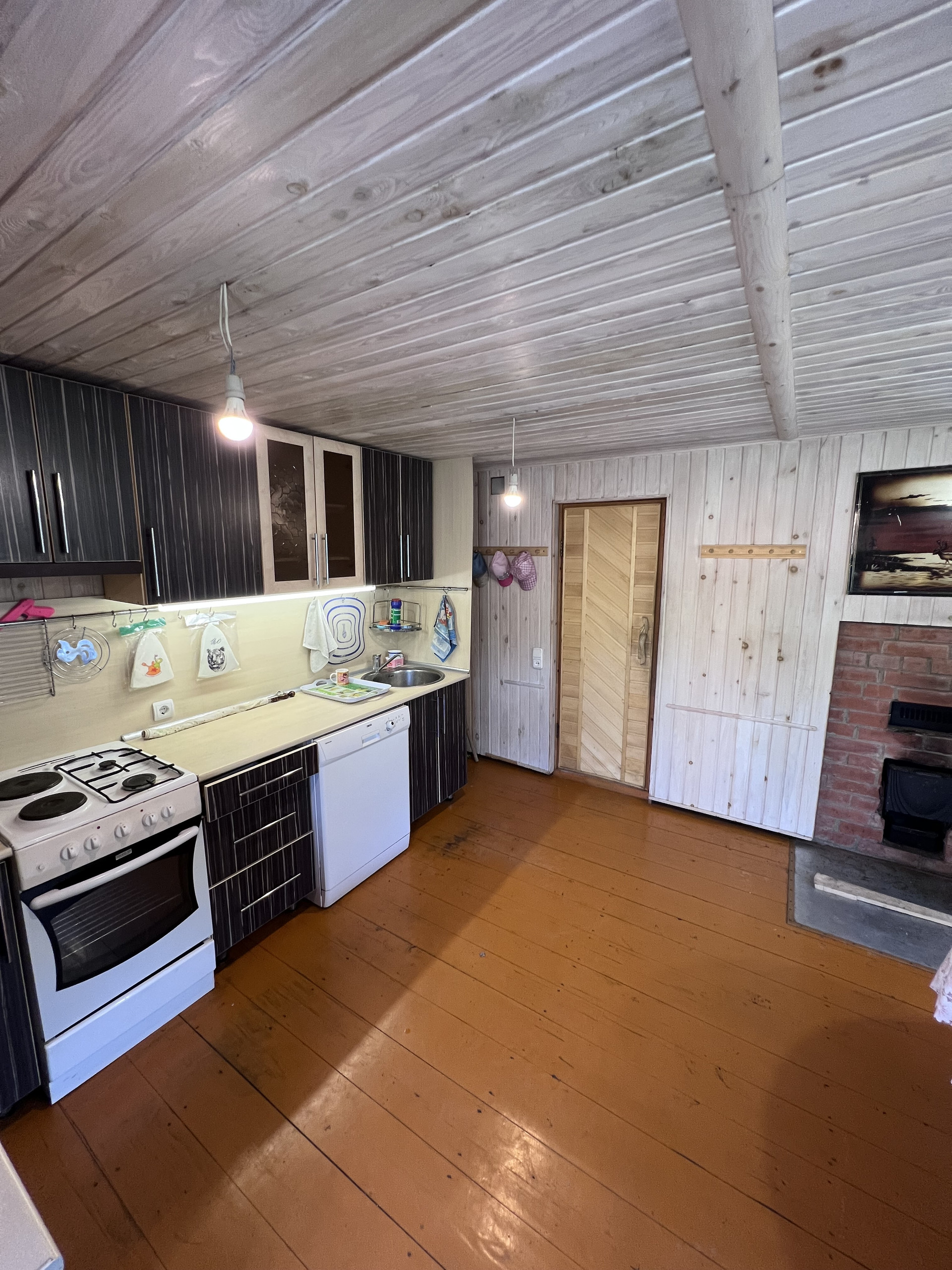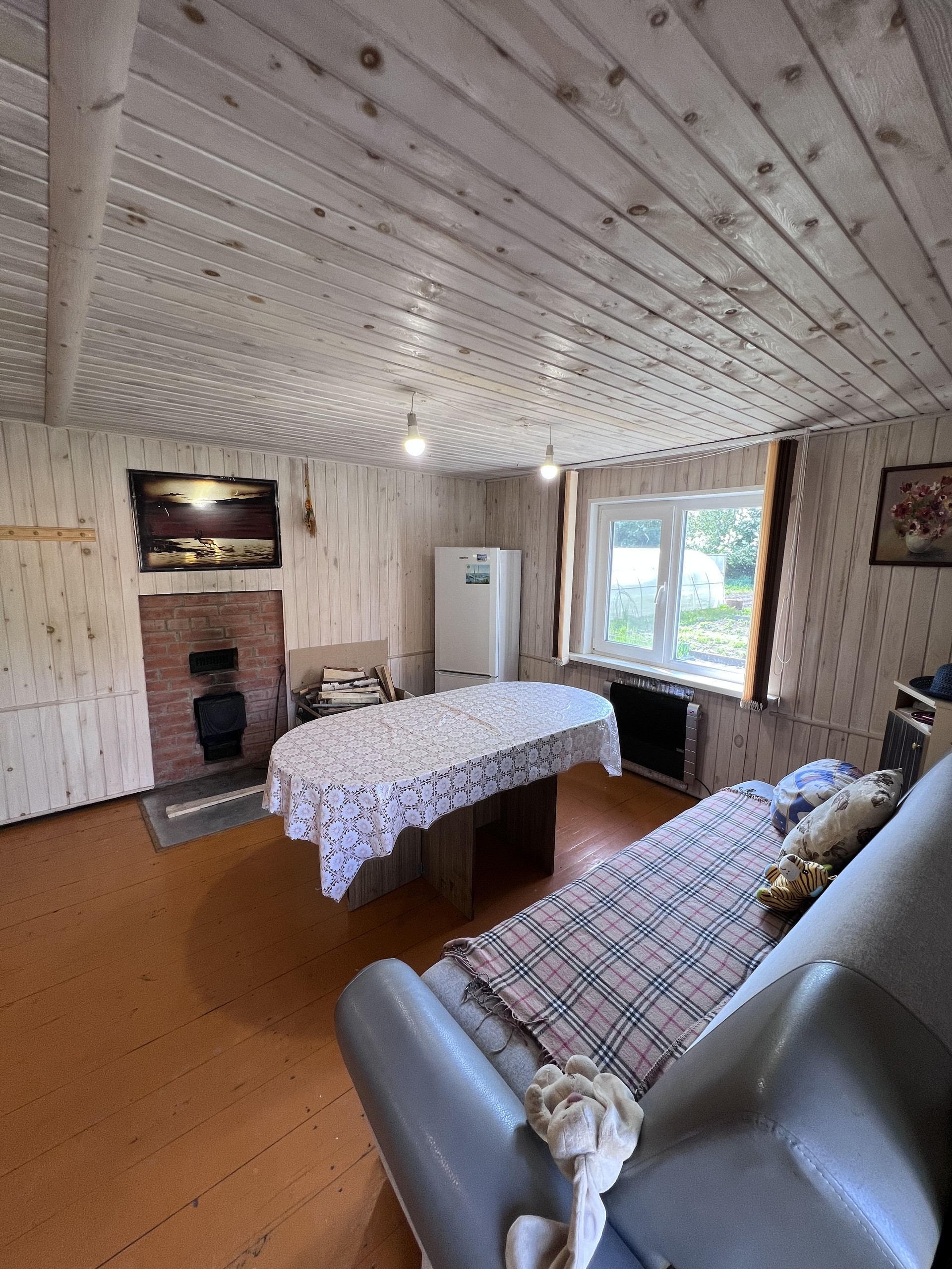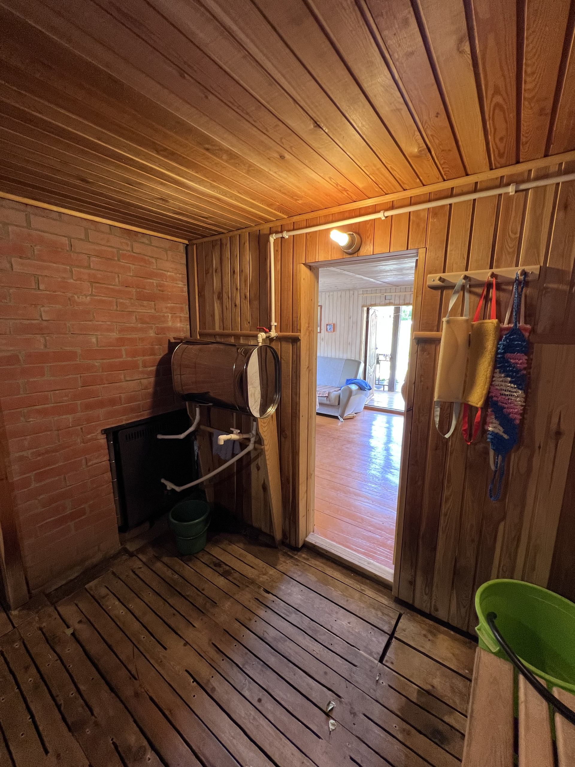 Отопление: бойлер (эл. котел), печь твердотопливная, круглый год холодная и горячая вода в доме.
