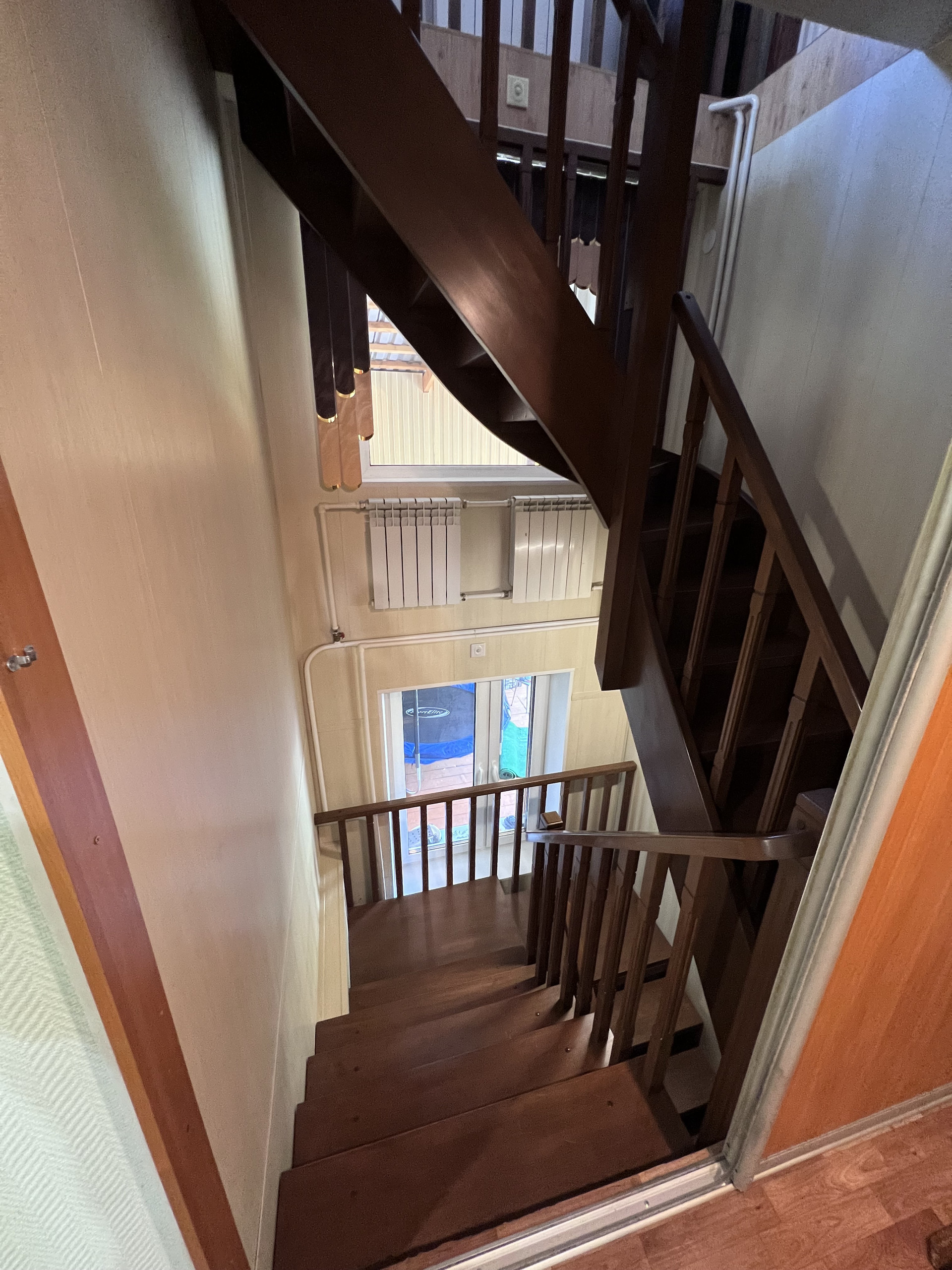 Дом трехэтажный общей плщ. 211,4 м2. На первом этаже (цоколь) расположены: гараж на две машины плщ. 49,3 м2; топочная плщ. 20,3 м2; сан узел (туалет и душевая кабина), погреб, лестничное отделение.