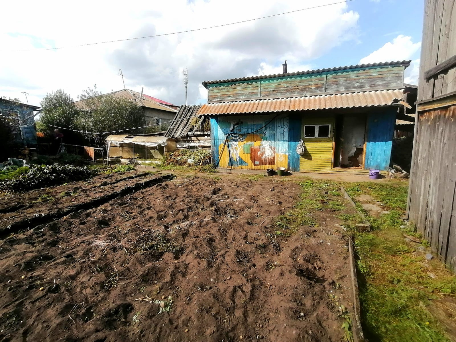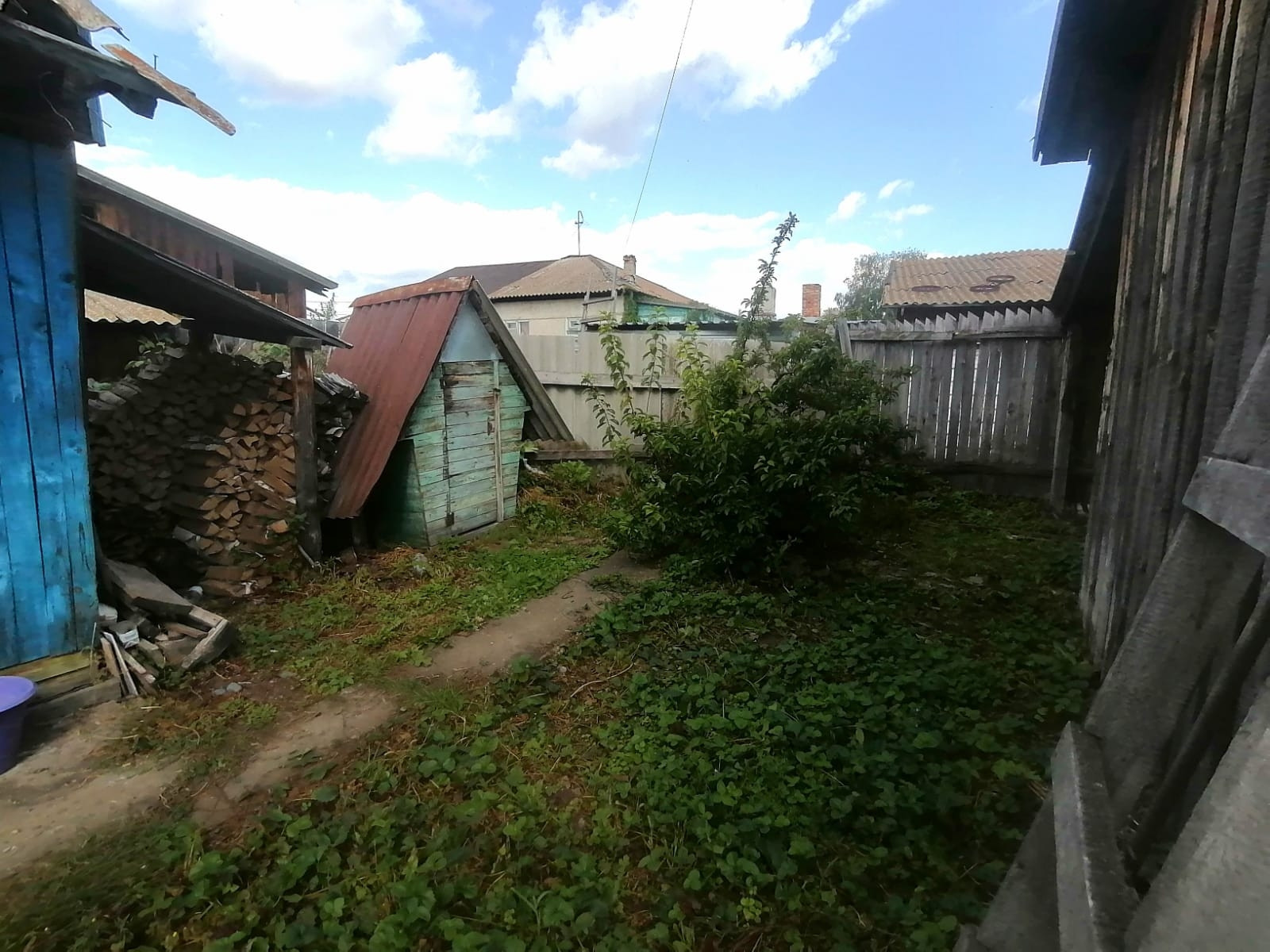 Во дворе есть постройки, при желании их можно легко снести и построить большую беседку с мангал-местом или увеличить огород.