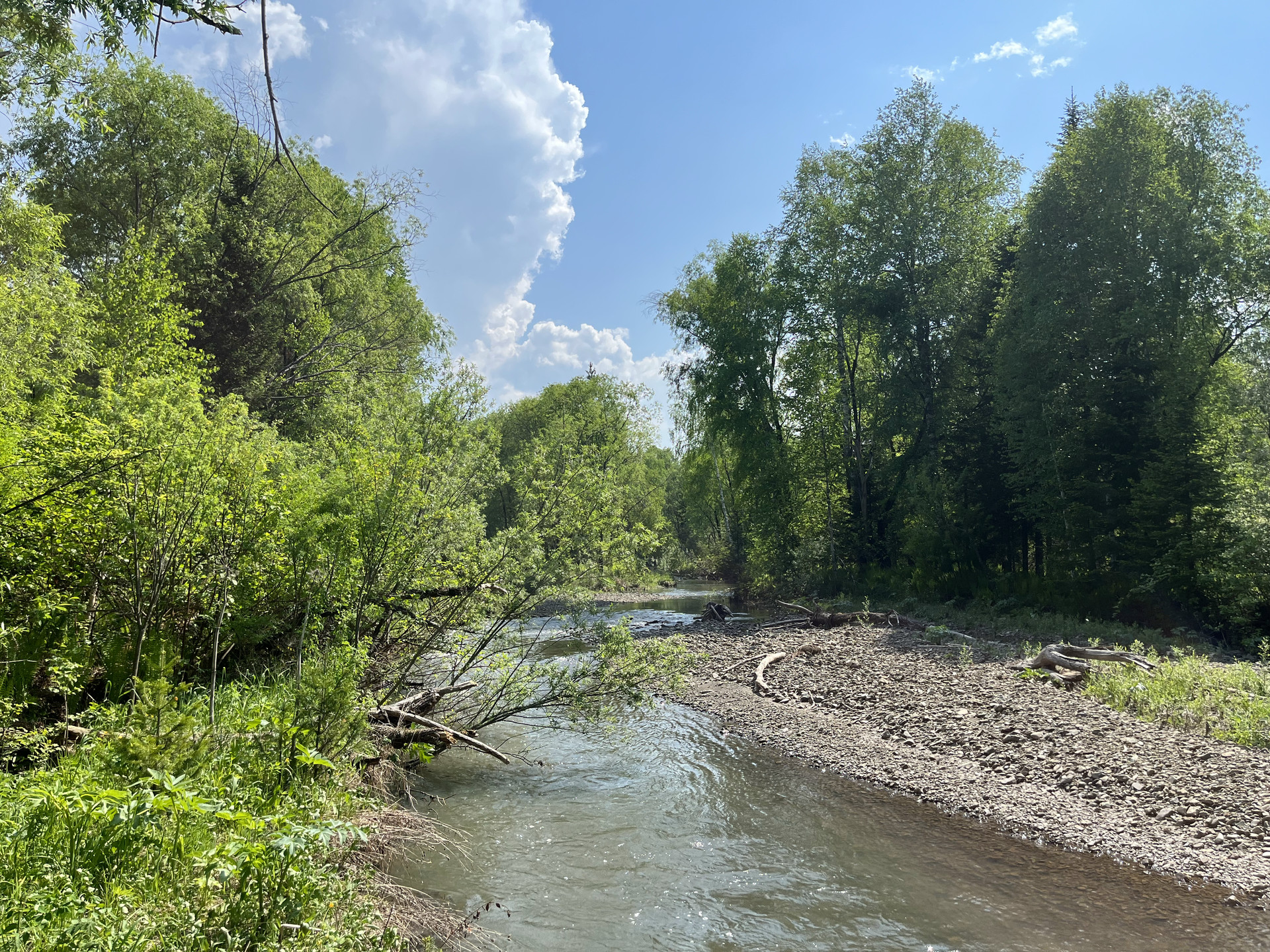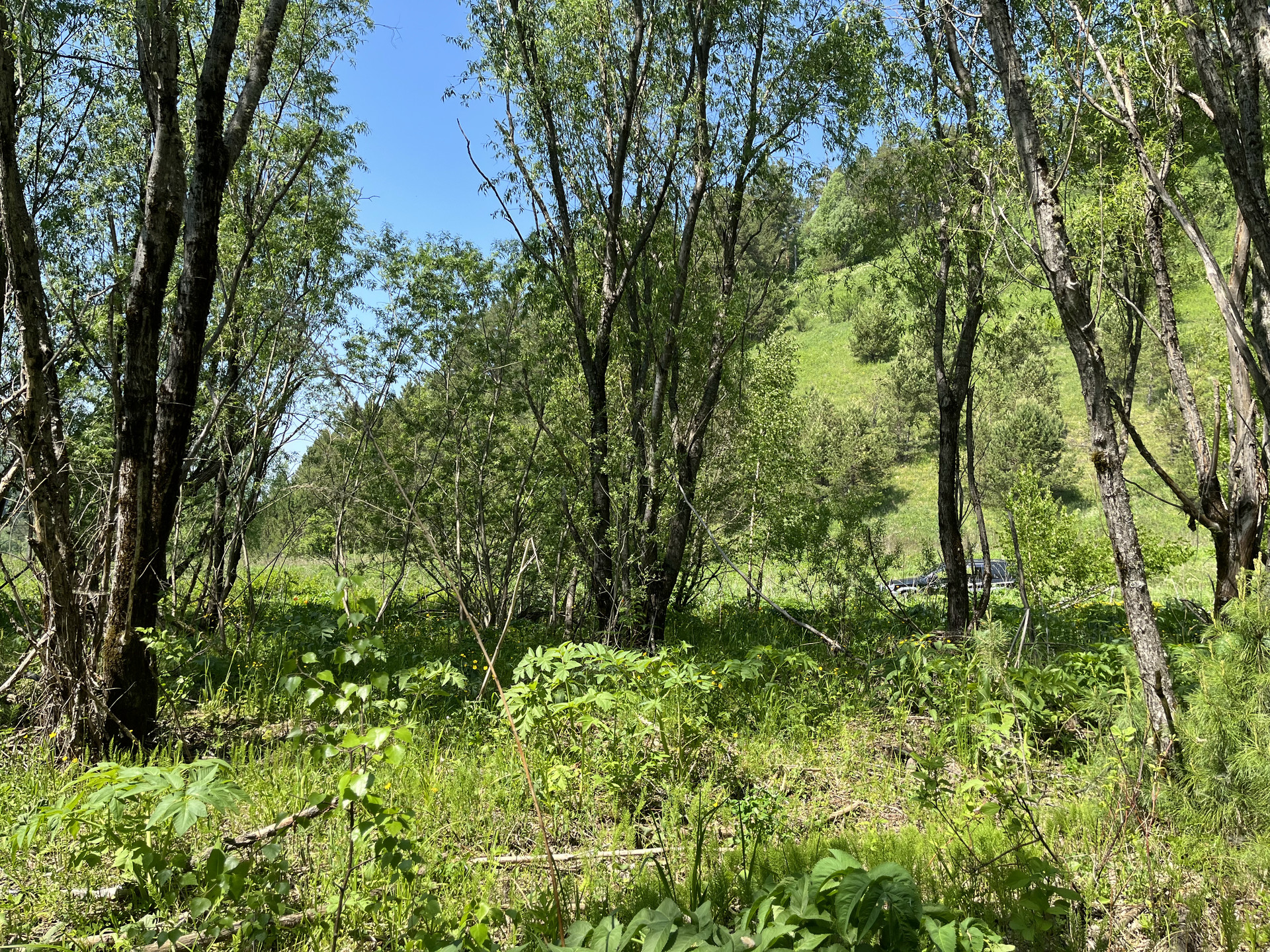 Участок у реки, берущей начало на хребтах северного Алтая, позволит реализовать многие из проектов, которые указаны в объявлении. В реке водится хариус.