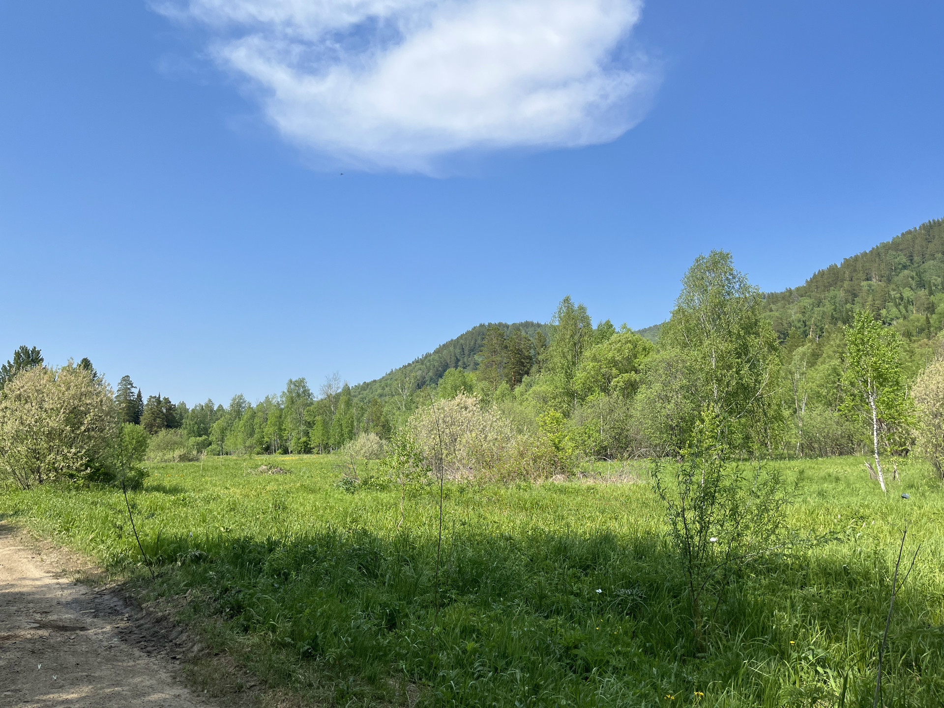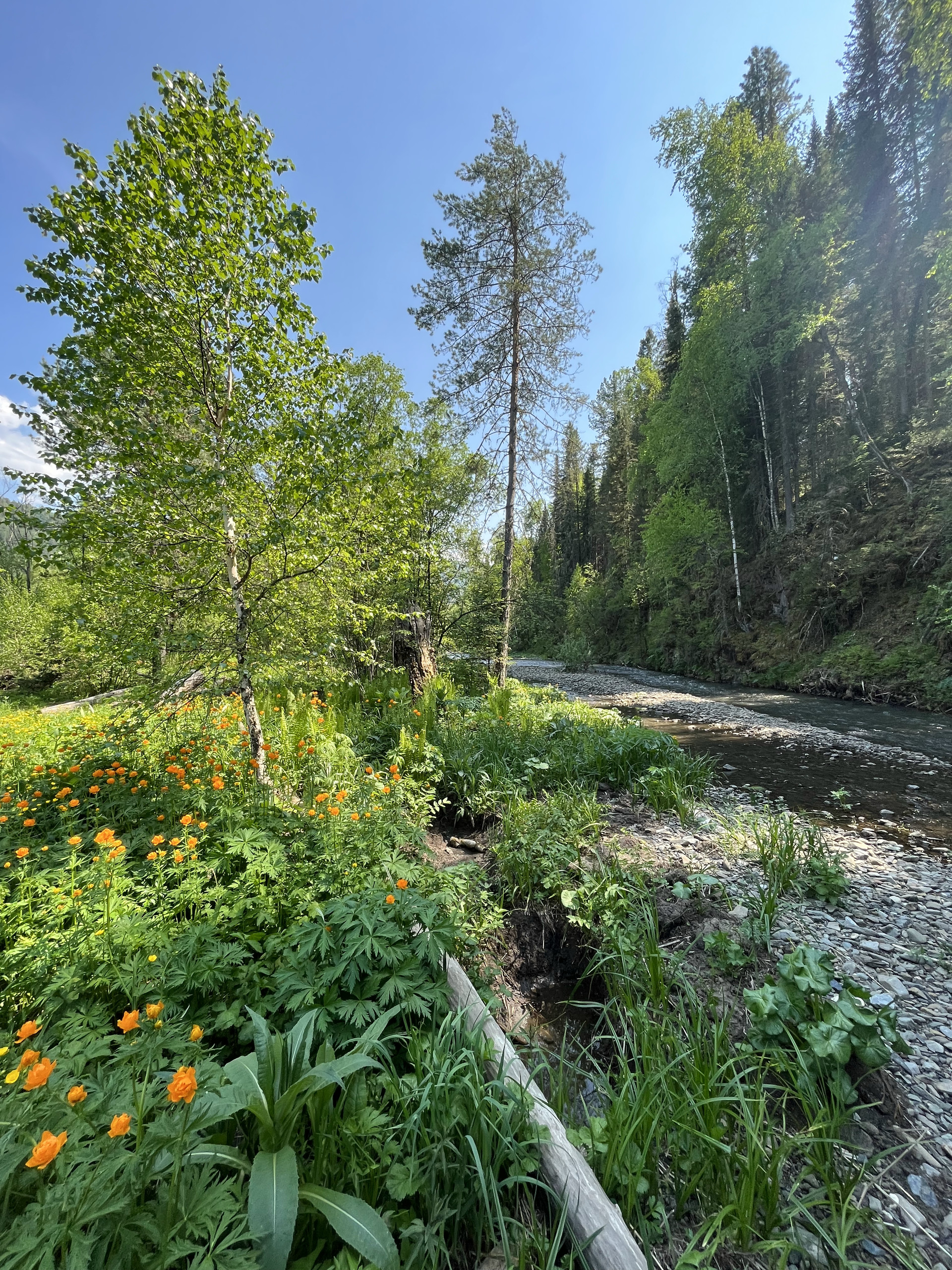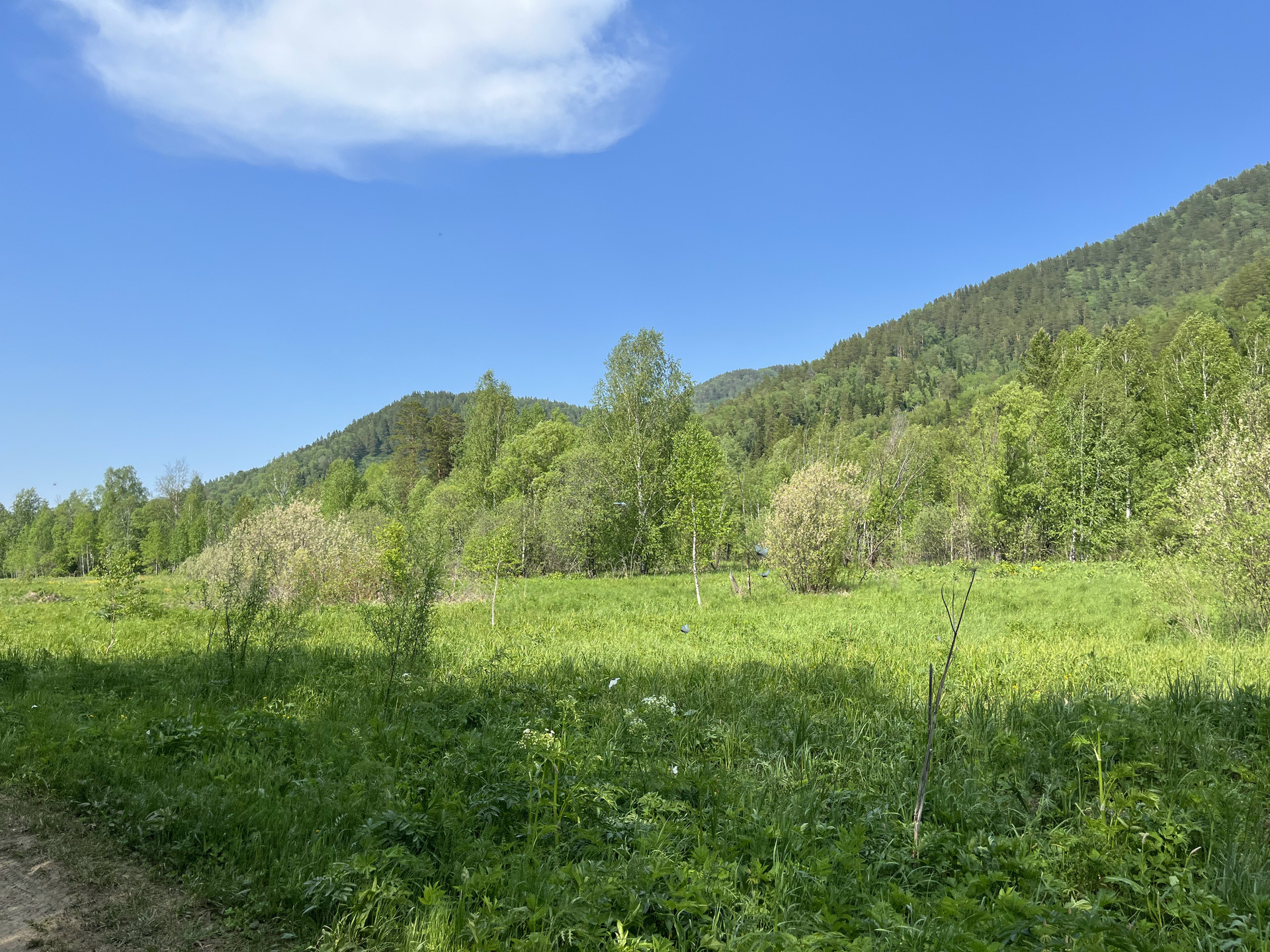 Участок у реки, берущей начало на хребтах северного Алтая, позволит реализовать многие из проектов, которые указаны в объявлении. В реке водится хариус. Рядом лес. Рядом дорога.
