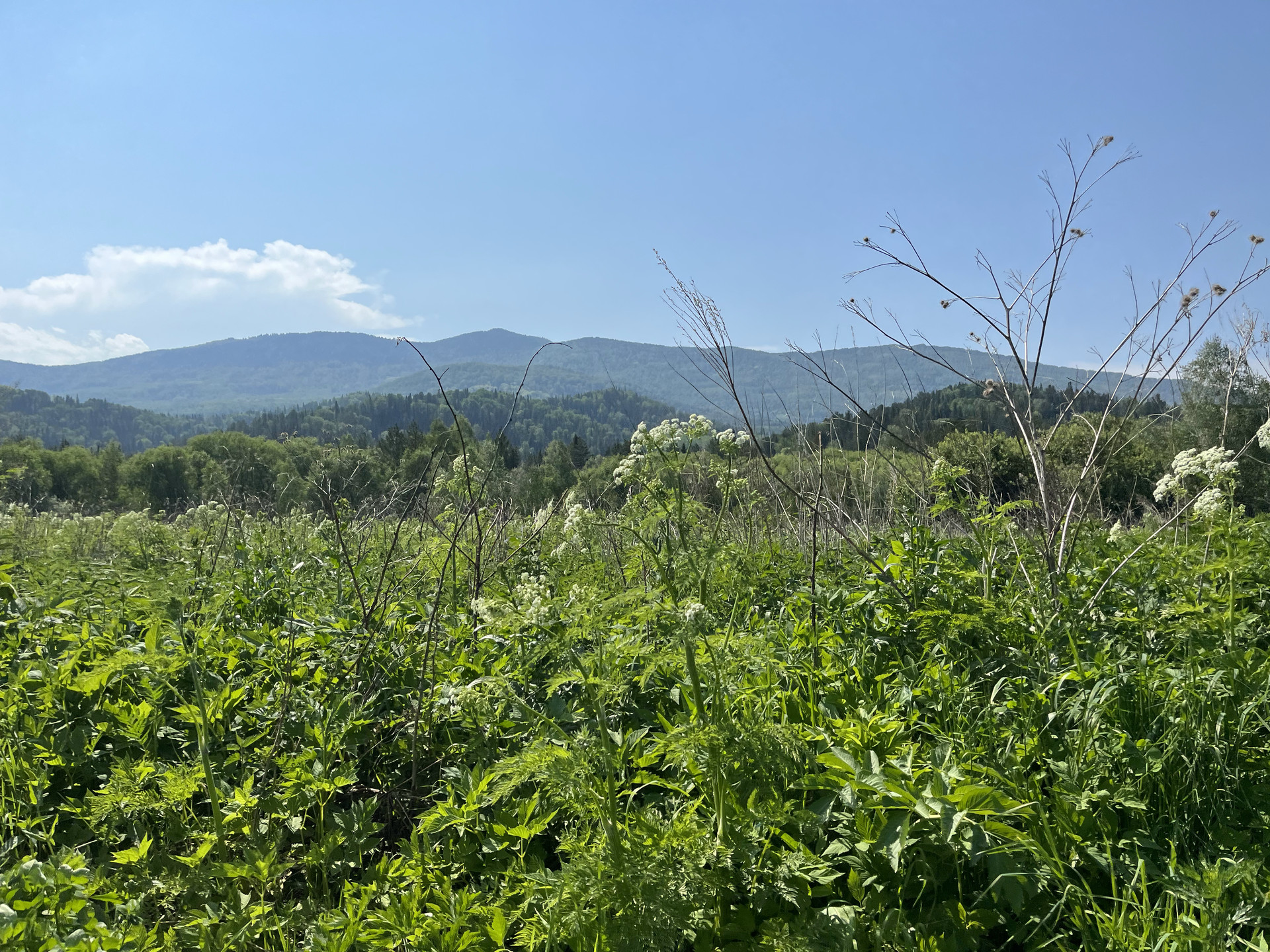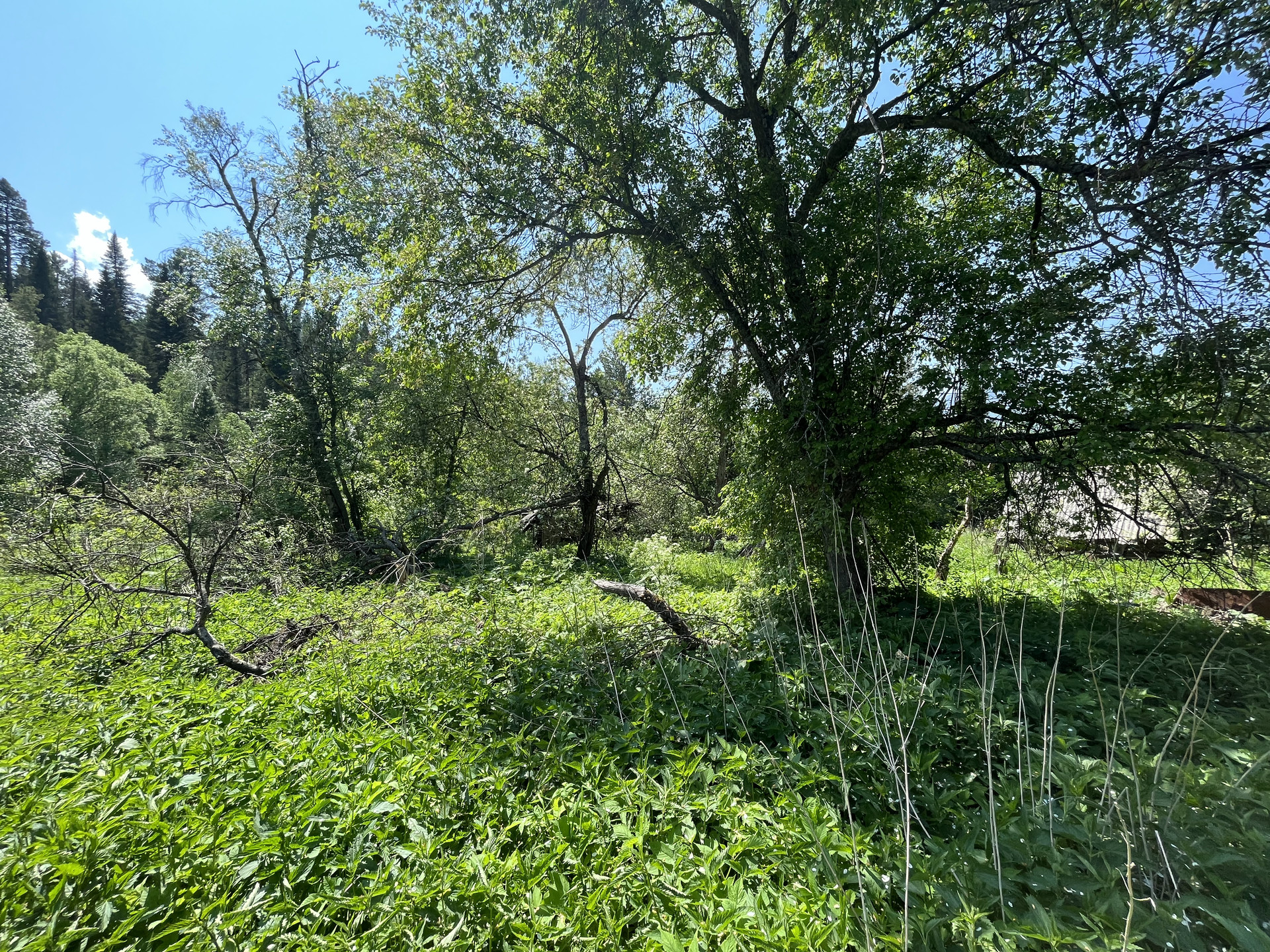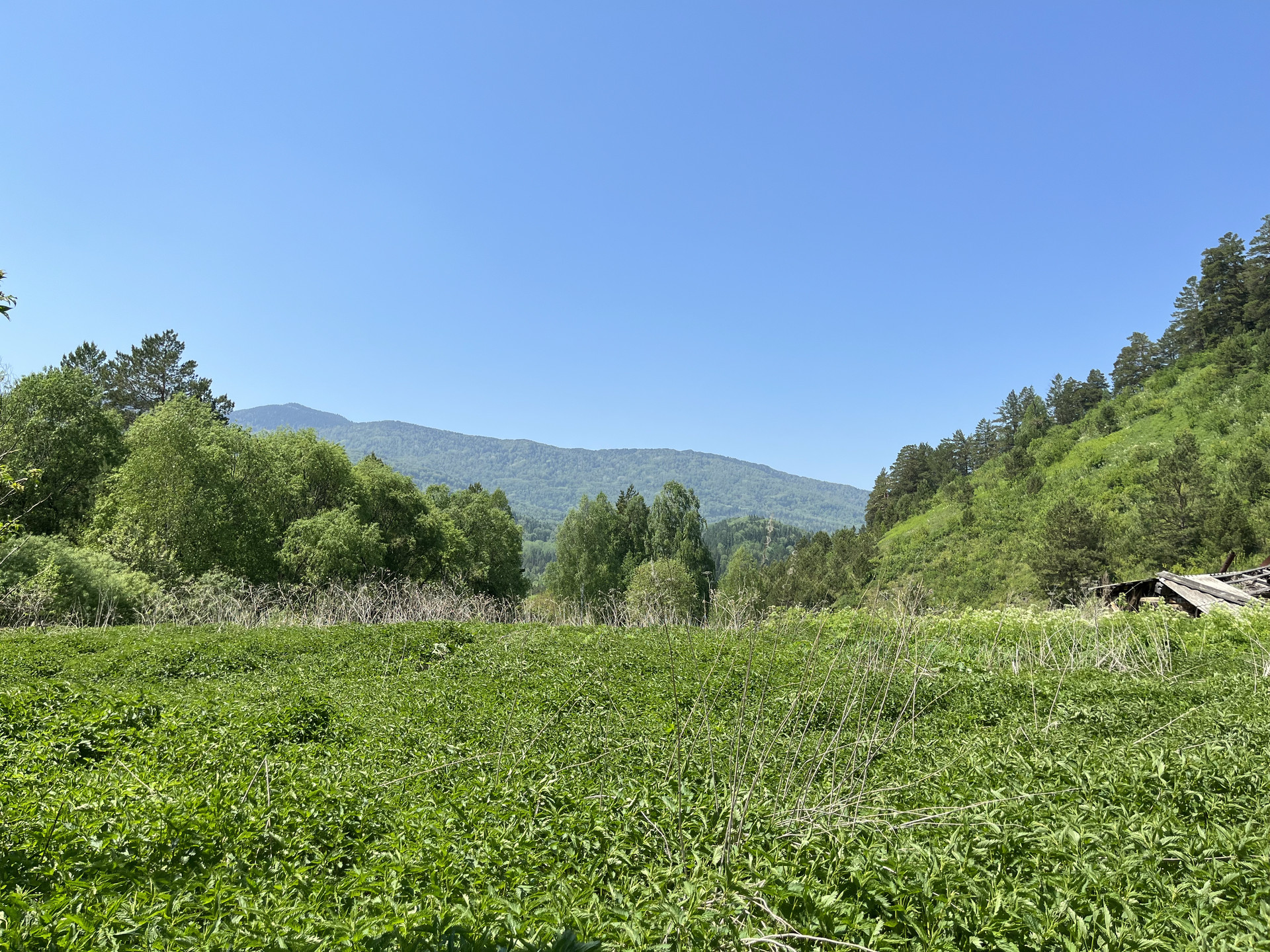 Участок у реки, берущей начало на хребтах северного Алтая, позволит реализовать многие из проектов, которые указаны в объявлении. В реке водится хариус. Рядом лес. Рядом дорога.