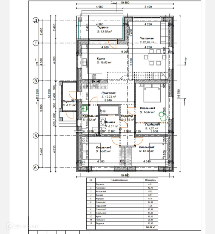 Просторный и объемный зал-гостиная с выделенной кухонной зоной и выходом на открытую террасу, три спальные комнаты, гардеробная комната, кладовая, просторный санузел с ванной и душем, отдельная котельная с колонной системой фильтрации воды.