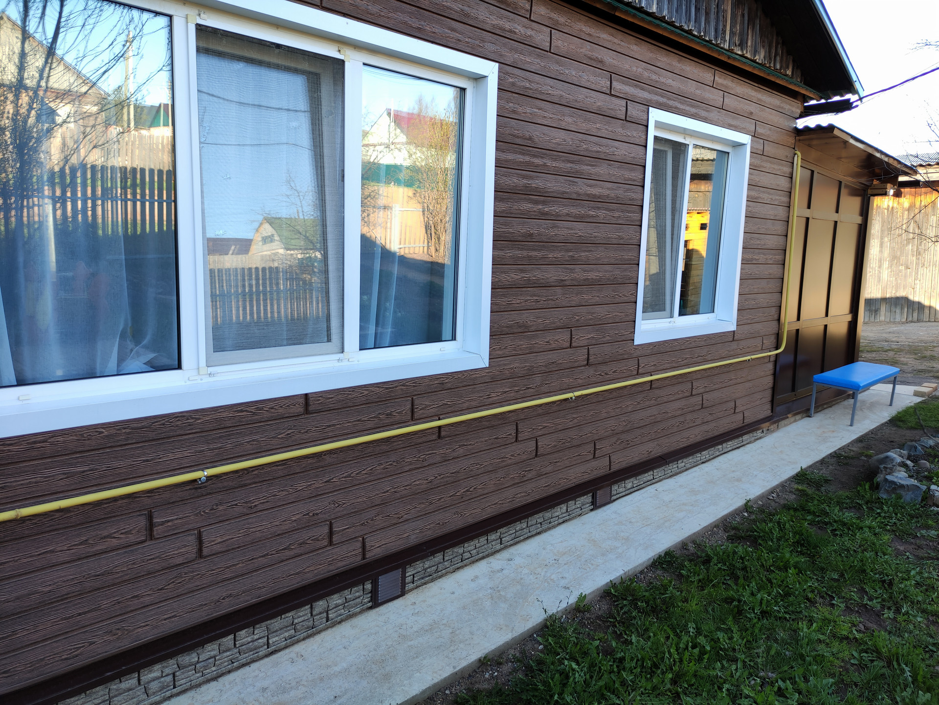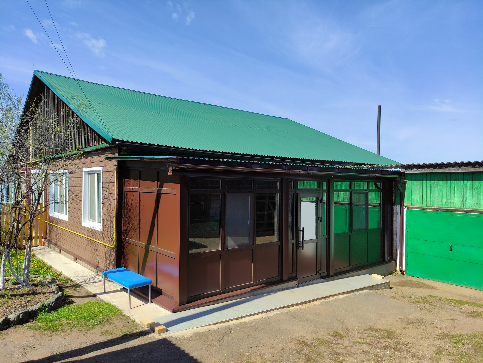 В доме газовое отопление, резервное отопление - своя котельная на дровах и электрический котёл. Электроснабжение 220 В и 380 В. Установлены ПВХ окна, кровля из металлопрофиля, дом обшит сайдингом, веранда из ПВХ. Есть гараж на одно машиноместо, новая баня из газобетона (2022 г.). Также имеются складские и прочие постройки. Для бани остались дрова (примерно до января).