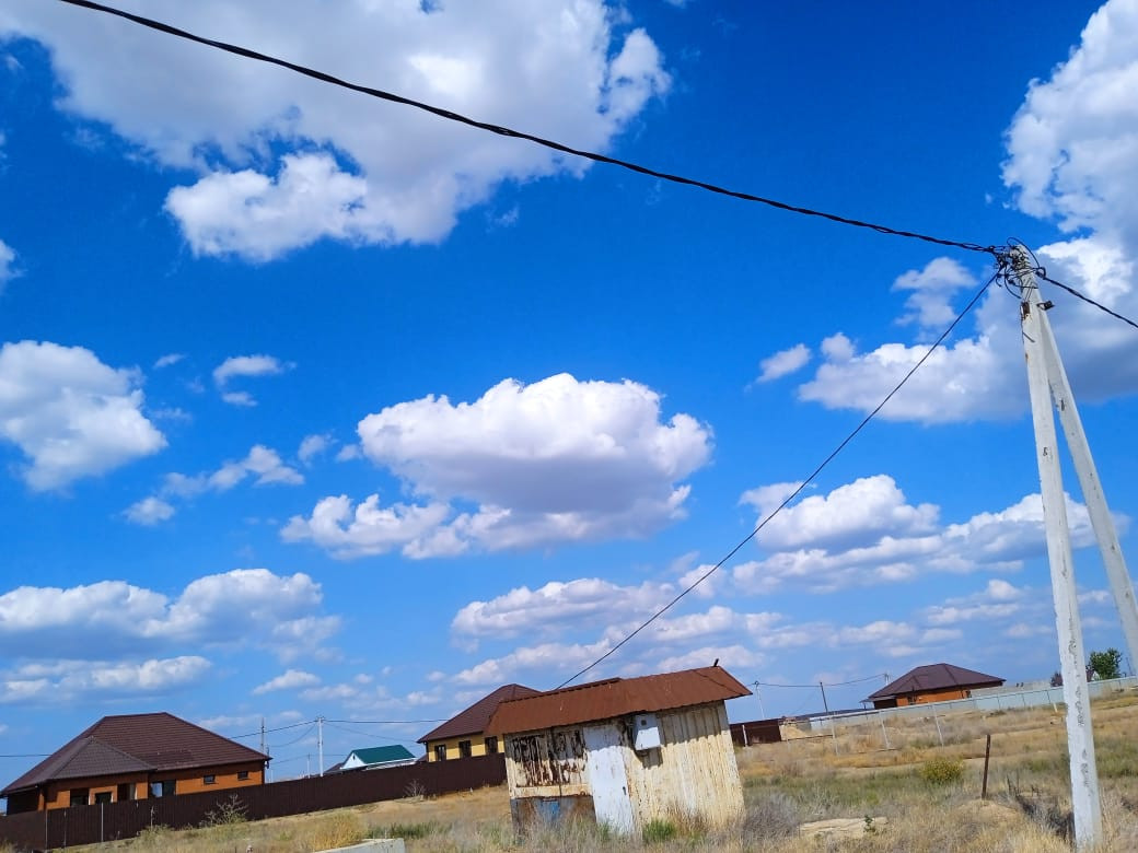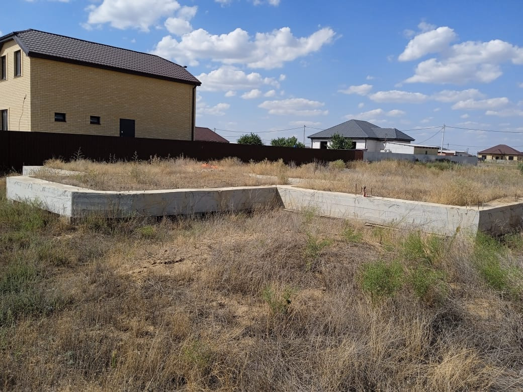 Участок в с.Карагали, в котором подведено электричество на 380V, подведена вода, выведен канализационный слив, а также отлит фундамент на сваях, расстояние до асфальта 25 метров, первая линия.