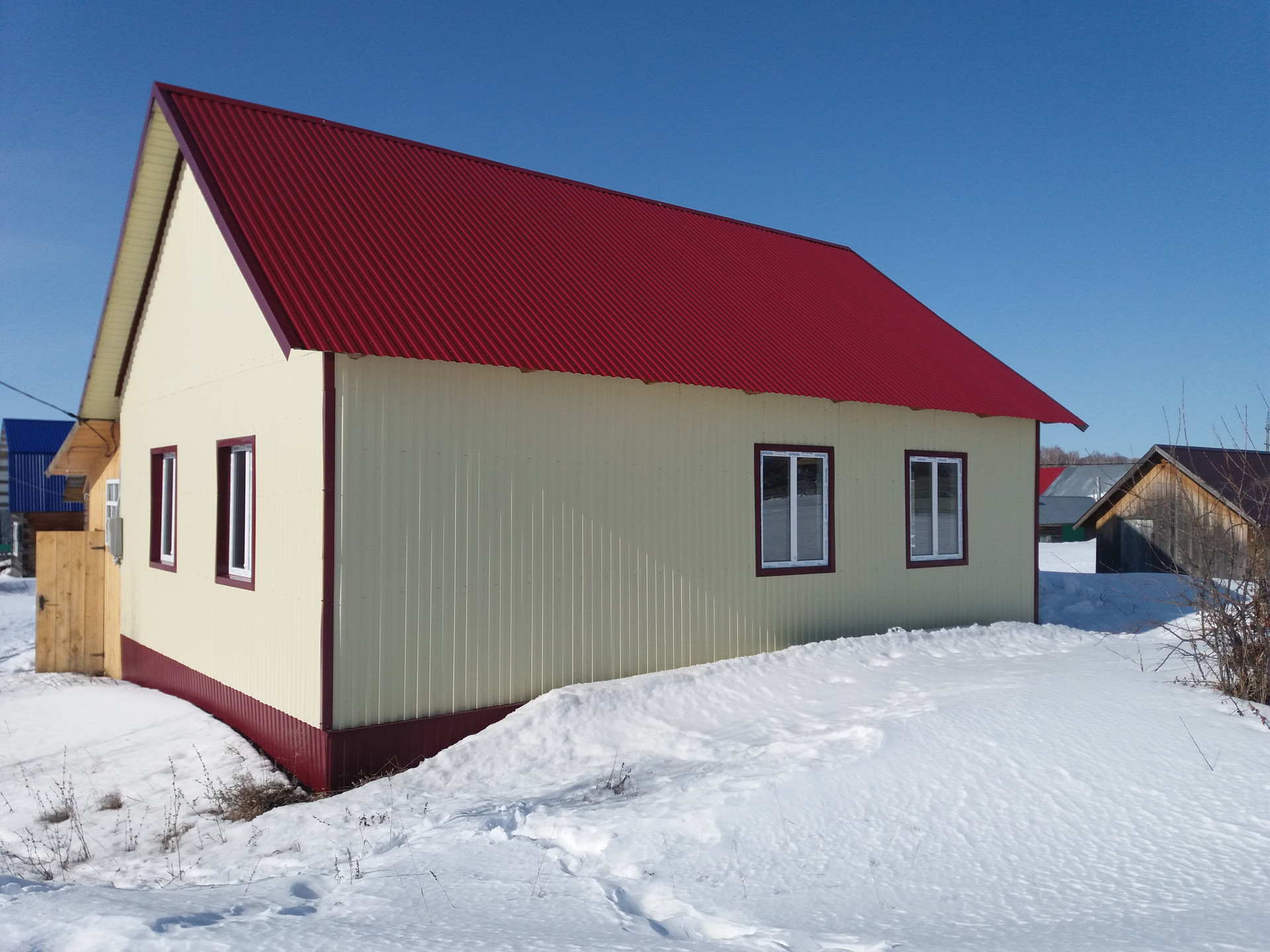 Продаётся новый жилой дом в мкр. Молодёжный с. Караидель. Техкоммуникации подключены. В непосредственной близости находятся: школа, детский сад, магазины, парки и др. Дорога - асфальт до участка. Приличным бонусом  к  дому идёт новая баня, готовая к эксплуатации. Один взрослый собственник. Возможен торг.