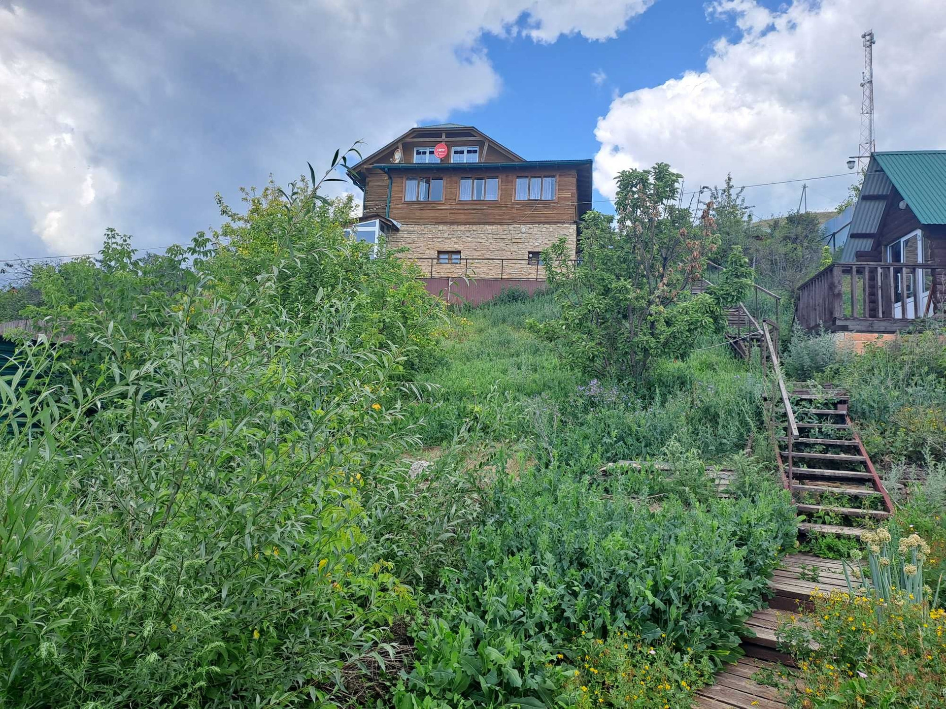продается котедж в живописном месте с видом и выходом на каму.первый этаж кирпич.второй брус 200×200.сделано все.отопление газовое. эл.10к.ват.выгребная яма на 10 куб.в доме 2 санузла.4спальни.огромная терраса. печь.камин.отдельно 2 новые бани.одна с выходом на каму.беседка с камином.и огромный гараж.для хранения лодок.установлена лебёдка и рельсы для буксировки лодок.один взрослый собственник.документы готовы.