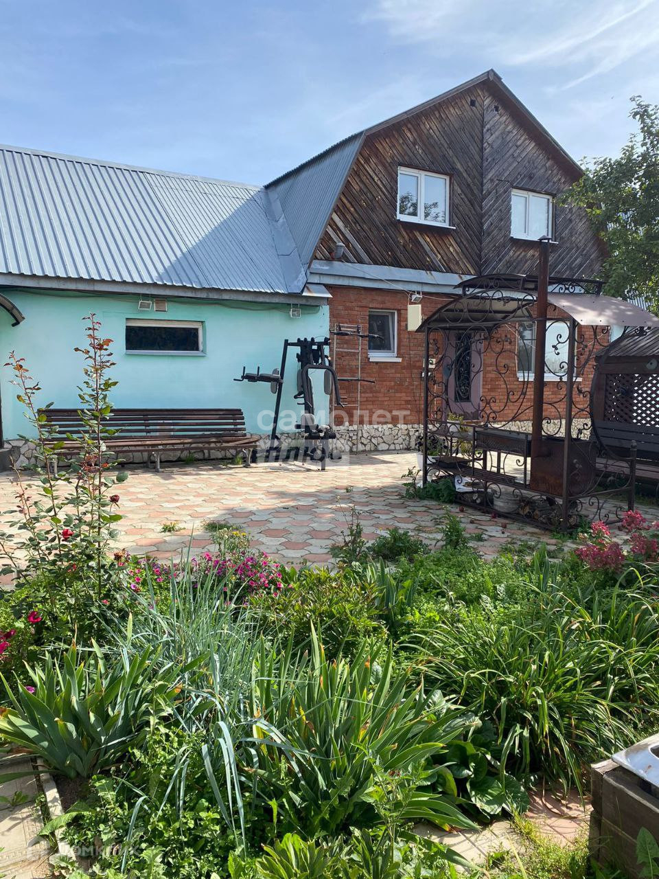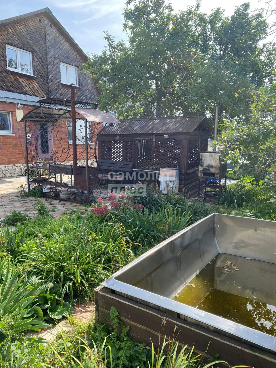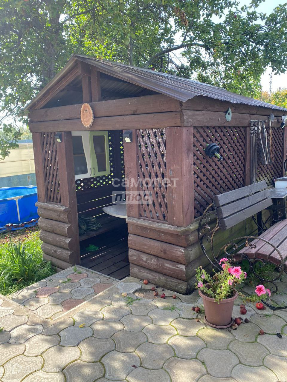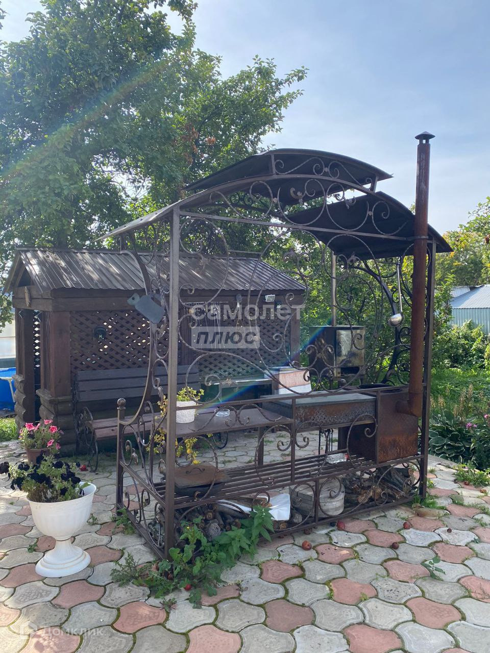 -На территории дома уже иметься деревянная беседка с зоной для мангала.