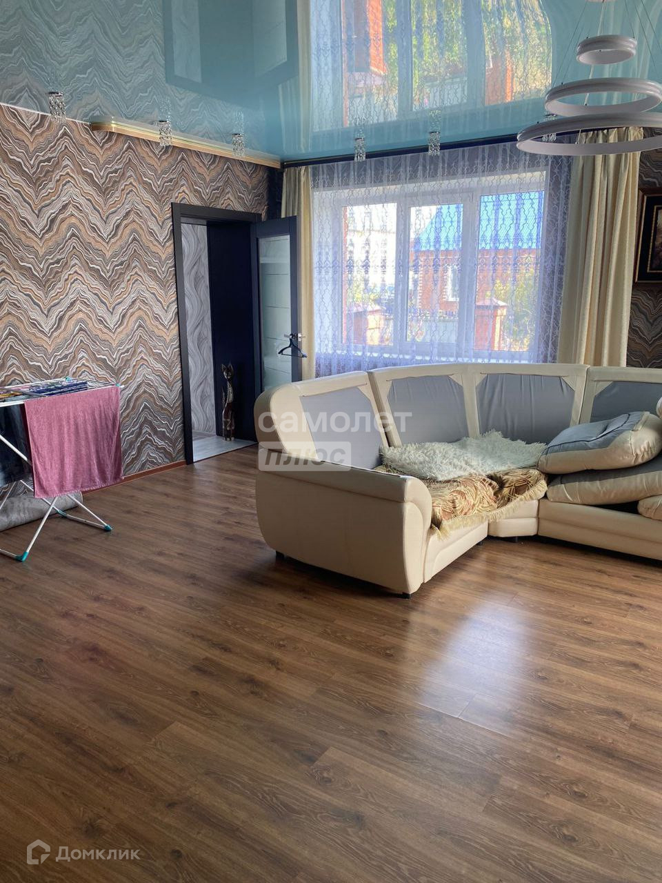 -Натяжные потолки по всему дому кроме ванной комнаты.