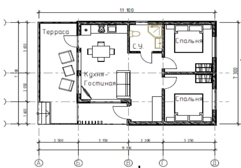 Общая площадь 70 м2