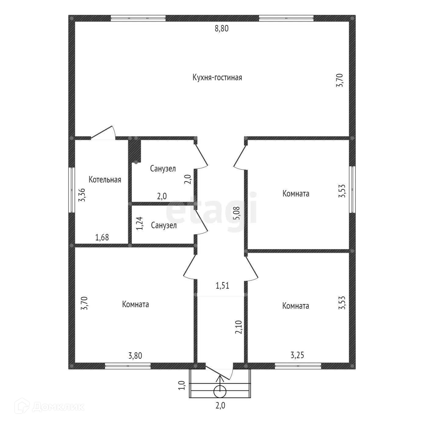 ✅ Материал стен полнотелый кирпич, внешний утеплитель пенополистирол, внешняя отделка штукатурка Кароед