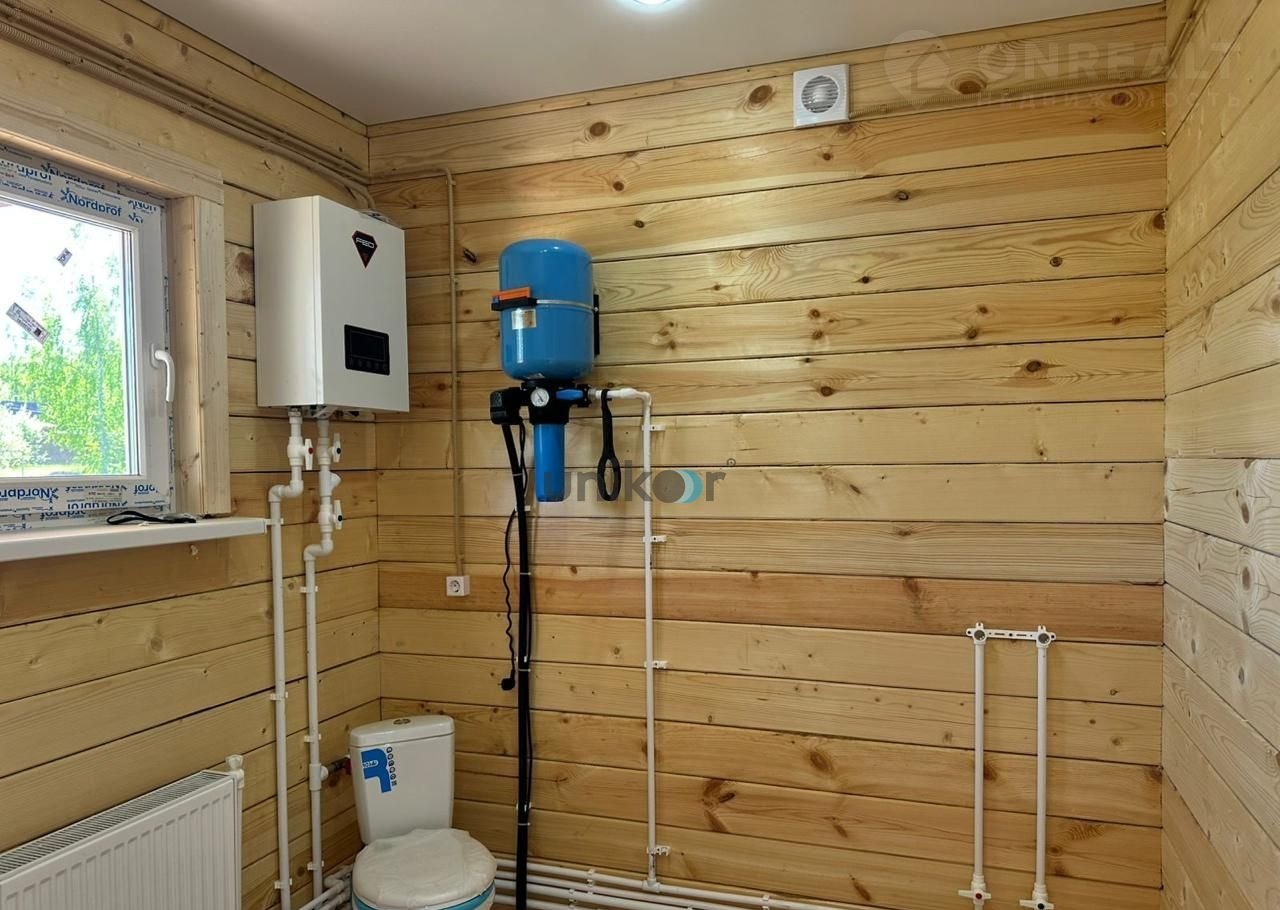 Сантехника; Водоснабжение (осуществляется со скважины); Газ (проведён по границе участка); Отопление. Теплый пол по всему периметру первого этажа, батареи на первом этаже.