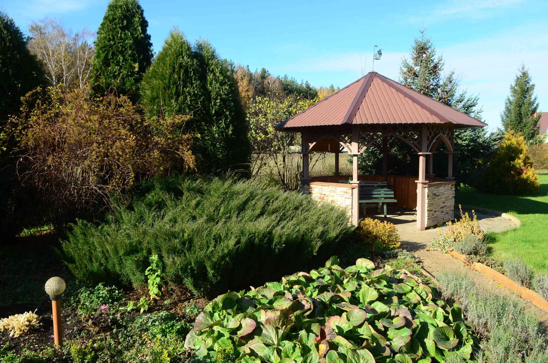 Площадь территории участка 6 650 м². Дополнительно на участке есть отдельно стоящий гостевой дом с летней кухней, зоны плодовых деревьев, овощных и ягодных культур. Усадьба оснащена системами автоматического полива, централизованным газо-, электро- и водоснабжением, обеспечивающими комфортное проживание за городом.